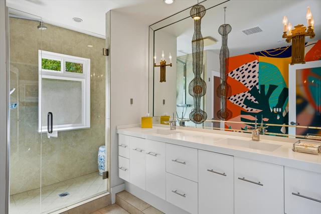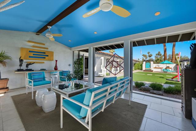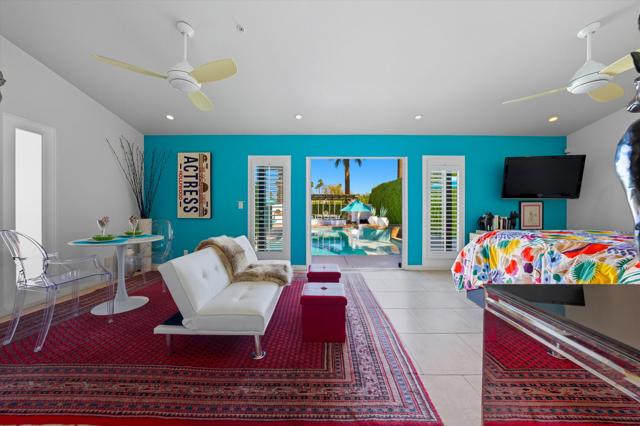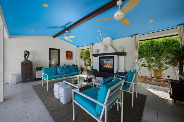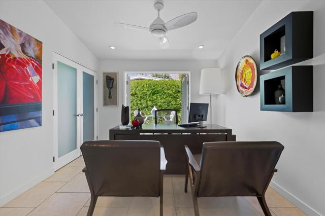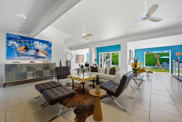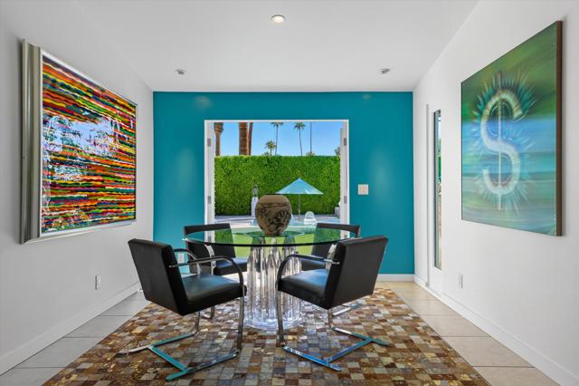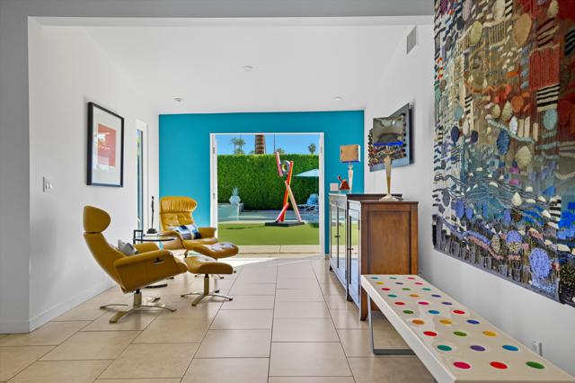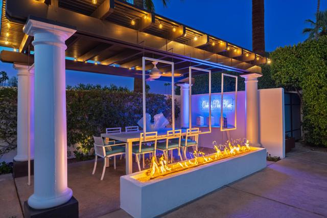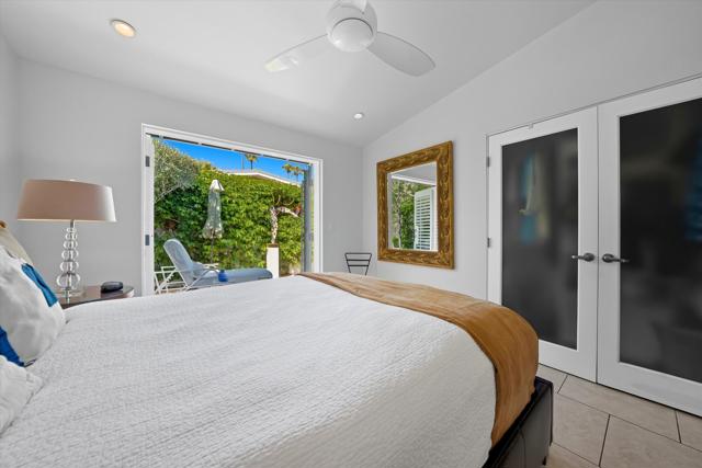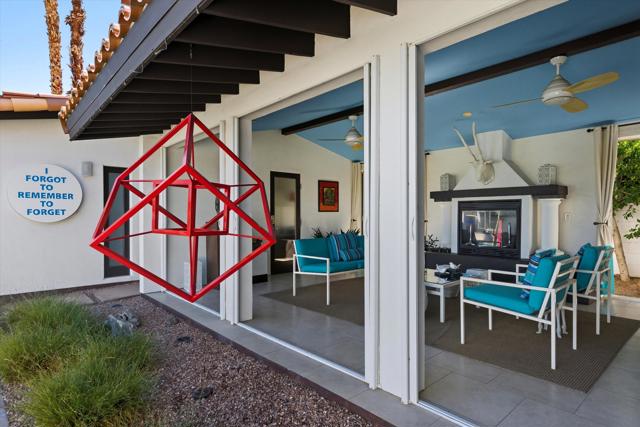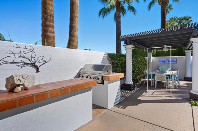 Classic meets contemporary in this modern Hacienda located in desireable South Palm Springs on land you own with no HOA. This postwar 1948 modern California Ranch was conceived through the collaboration of developer, Paul Trousdale working with noted architect, Allen Siple. Embracing indoor/outdoor living with approximately 3,000 SF on one level featuring high ceilings, clerestory windows and other features that matured into Desert Mid Century Modernism a decade later. Walled and gated, the residence revolves around a central pool courtyard. After a 'down to the studs' remodel, the house now features 4 bedrooms and 4 baths, a heated loggia, and a 52 panel array of owned solar grid. A bonus is the detached guesthouse/casita (which currently produces income through a home share permit with the city. Facing the Taquitz Creek recreation trail and with a gallery + spa aesthetic, this unique property offers elevated living within your own private compound. The home has been featured in numerous publications. Now offered partially furnished (per inventory list) for a new sophisticated buyer.