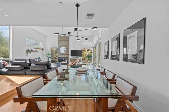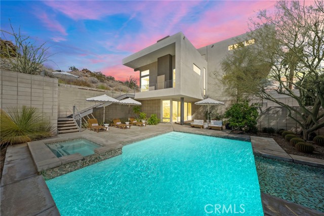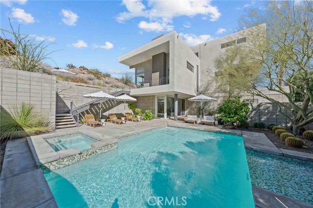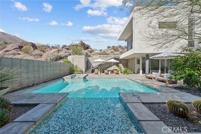 New-Century Modern Luxury in Indian Canyons, South Palm Springs. Discover the perfect fusion of mid-century inspiration and modern sophistication in this architectural masterpiece, nestled within the prestigious Indian Canyons neighborhood of South Palm Springs. Set against the dramatic backdrop of the San Jacinto Mountains, this residence captures the essence of desert modernism—where timeless design meets effortless luxury. Positioned in The 2801, one of South Palm Springs’ most impressive modern enclaves, this home echoes the architectural language that defines the area while offering enhanced privacy. Spanning 3,339 square feet, the residence showcases 12-foot ceilings, open-concept living, and walls of glass framing panoramic mountain and canyon views. Sunlight floods the interiors, highlighting minimalist finishes, natural textures, and fine materials chosen for both beauty and function. Designed for both relaxation and entertaining, the floor plan features three bedrooms, a bonus room, loft area, and three-and-a-half bathrooms, along with a dedicated family/media room that doubles as an elegant work-from-home retreat. Every space feels intentional—whether hosting guests, working remotely, or simply enjoying the tranquility of the desert surroundings. Outside, a resort-inspired saline pool anchors a private backyard oasis. Framed by manicured desert landscaping and open mountain vistas, the outdoor living areas invite sun-drenched afternoons, sunset gatherings, and evening entertaining under starlit skies. Additional highlights include paid solar, low HOA fees, and fee-simple land ownership—a rare and highly sought-after advantage in the Palm Springs market. This combination of architectural pedigree, modern sustainability, and cost-efficient ownership makes the property a standout opportunity for luxury buyers seeking both sophistication and value. Located just minutes from downtown Palm Springs, world-class dining, designer shopping, golf, and scenic hiking trails, this home embodies the best of both worlds: architectural integrity and modern comfort.