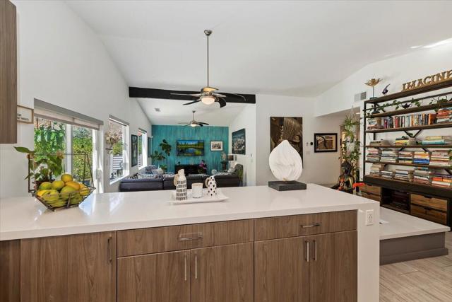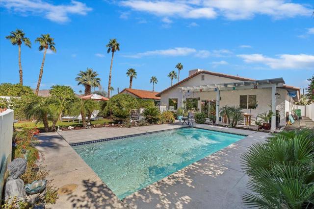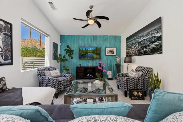 This spectacular contemporary residence sits on a rare oversized lot with a west-facing backyard and dramatic Santa Rosa Mountain Views. Fully furnished and move-in ready, it's the perfect long-term rental for those seeking comfort and style in the desert. Enjoy a private outdoor oasis with a Lap Pool, Alumawood Lattice Patio, Fire Pit with Cobalt Blue Glass, Artificial Turf Yard, and lush tropical landscaping. Inside, the open floor plan features an updated kitchen with quartz counters and stainless-steel appliances, plus a sunken living room that flows into the dining area and breakfast bar. The home offers two spacious bedrooms and two spa-like bathrooms with floating vanities and quartz finishes. Elegant porcelain floors enhance the main living areas, while plush Berber-Style Carpet brings warmth to the bedrooms. Stunning desert landscaping and beautiful palms create impressive curb appeal. This home combines modern design, turnkey convenience, and desert lifestyle, an exceptional opportunity for long-term renters.