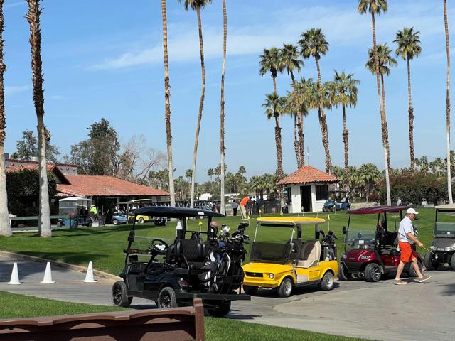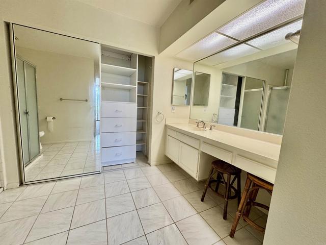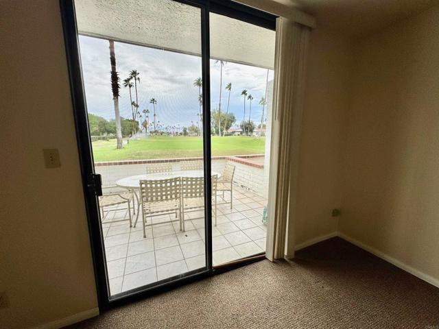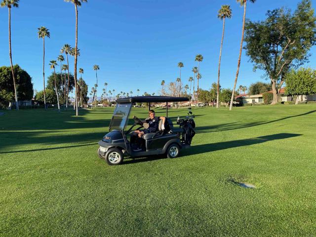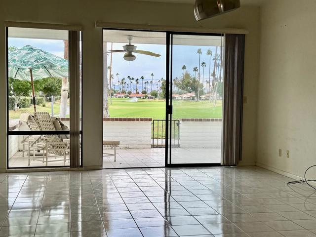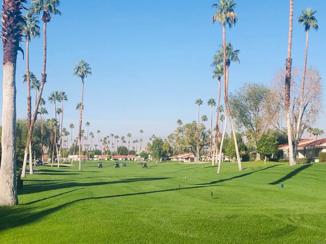 Priced for long term lease. Now UNFURNISHED and vacant. Golf cart INCLUDED AND HOA FEES paid by owner. Rancho Las Palmas Country Club! Single-level condo located on the South course, hole #5, behind the tee box. Sitting on a quiet, inner corner of the complex, it is no doubt you will find serenity here! Our Rancho Las Palmas Getaway is affectionately called Rancho Relaxo because it is truly a restful retreat with adventure waiting just outside in the sunshine of Rancho Mirage! Currently being painted with fresh white paint. This is a single-story floor plan with both bedrooms separated and secluded from one another. Perfect for guests with a versatile and customized guest suite. Two Car Garage and a four-seater golf cart for your use is included and perfect for sunset cruises! Perfect for working virtually and the full-size desk looks out towards the fairway! The community pool is just steps away from the back patio, with a beautiful spa to allow you to relax even more! You can't beat this locations and its proximity to all your favorite restaurants and shopping, including Whole Foods, Nordstrom Rack, Street Fair at the College of the Desert, and The River Mall with a movie theater and so many popular restaurants! Priced for 12 month lease. HOA fee paid by owner. Utilities paid by tenant. Click on video virtual tour link
