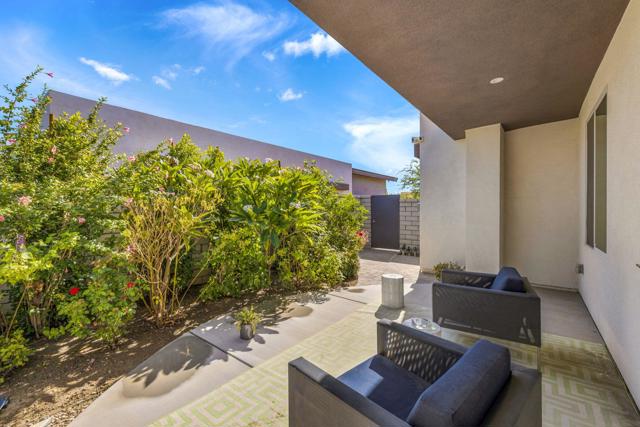 This newer home in Iridium--a boutique community of just 27 modern residences in Rancho Mirage--offers the perfect blend of luxury and comfort. Inspired by the mid-century movement that defines desert architecture, this fully equipped long-term rental is designed to meet all your needs. Step into an open floor plan with soaring 10-foot ceilings, recessed lighting, and expansive multi-slide doors that lead to two private outdoor patios. Enjoy a range of amenities, including a private saltwater pool and spa, as well as a pickleball and basketball court, all set against breathtaking mountain views. This thoughtfully designed home features four bedrooms, ensuring privacy for all. One bedroom has been converted into a spacious, sunlit office. The master suite boasts an oversized shower and a generous walk-in closet, while a second bedroom includes an ensuite bathroom. The gourmet kitchen seamlessly connects to the great room, offering a wet bar, top-of-the-line stainless steel appliances, and an oversized island--perfect for entertaining. Additional high-end features include a whole-home water purification and softener system, bidets in all three bathrooms, a solar energy system,. A premium Pioneer sound system enhances both the living room and outdoor patio areas. Ideally situated near premier shopping, dining, golf courses, and outdoor recreation, this home offers the best of desert living