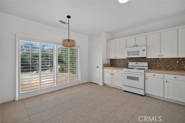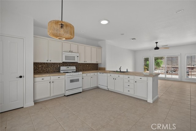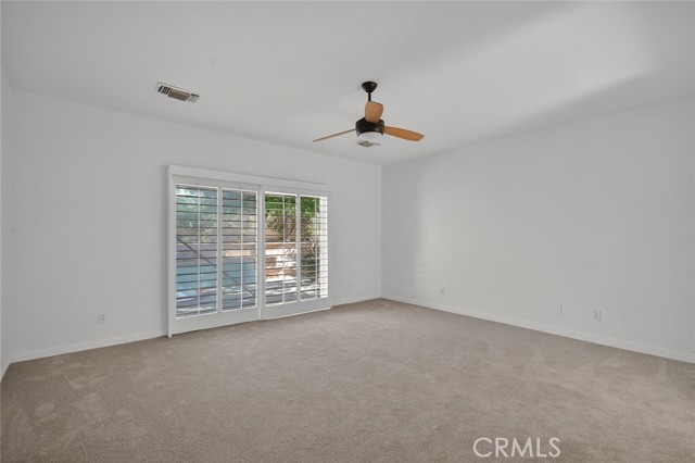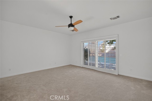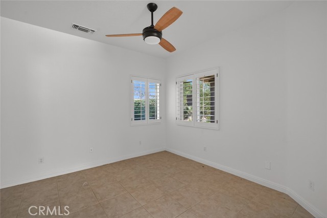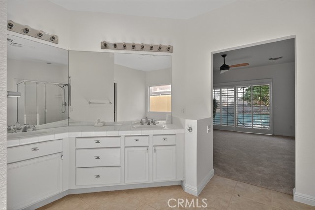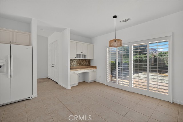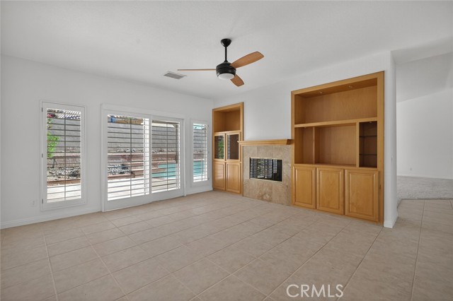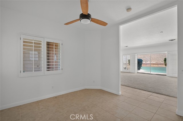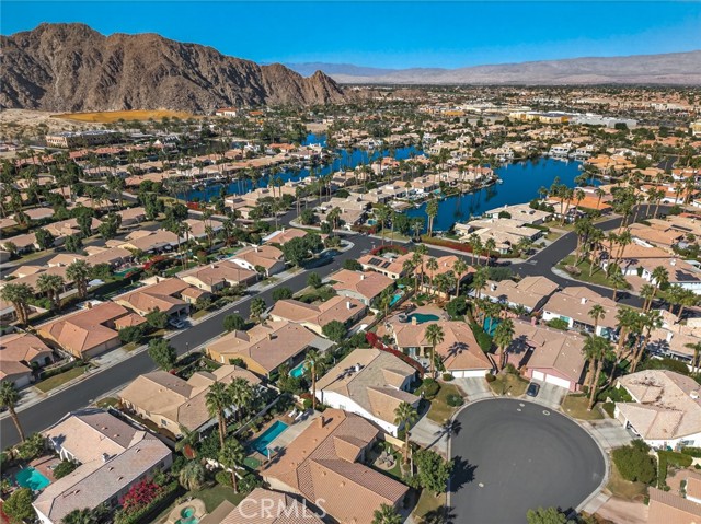 Experience resort-style living in this beautifully maintained single-story home in the prestigious Lake La Quinta community that features a serene 25-acre private lake. This 3-bedroom, 2-bathroom residence offers 2,286 sq. ft. of refined comfort and timeless style. Crisp white paint, light colored tile floors, plantation shutters, and soft neutral carpeting amplify natural lighting throughout. The open layout includes formal living and dining rooms, a cozy family room with a fireplace, and a spacious kitchen with travertine countertops, ample cabinetry, pantry, and a charming breakfast nook opening to a private front patio. The primary suite offers backyard access, a spa-like ensuite with dual vanities, soaking tub, separate shower, and a walk-in closet. Step outside to a private backyard oasis with flagstone and terracotta tile, a lap pool, and a relaxing spa—perfect for entertaining or quiet evenings under the desert sky. Enjoy the best of lakeside living with community amenities, scenic walking paths, and peaceful water views.