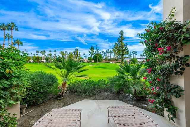 Located behind the gates at PGA West! Remodeled Champion 1 condo overlooking the 8th hole of the popular Palmer Private Course.Courtyard entry takes you into this home offering cement flooring, kitchen has been remodeled with new cabinetry, Quartz counter tops, subway tile, stainless appliances including a commercial grade Bertazonni gas range. The kitchen overlooks the dining & living area forthe open concept! Master bedroom & guest bath have new vanities with quartz counter tops. Step out to the back patio with plenty of dining space, and watch the golfers putt on the 8th hole. This home has everything you need for a second home, or full-time home. Steps away from the community pool & spa!Offered furnished.