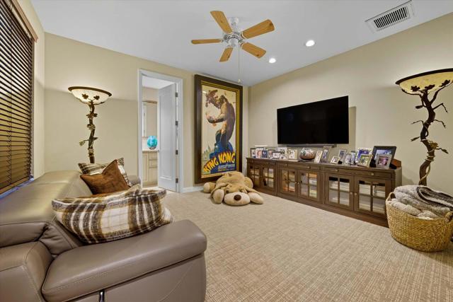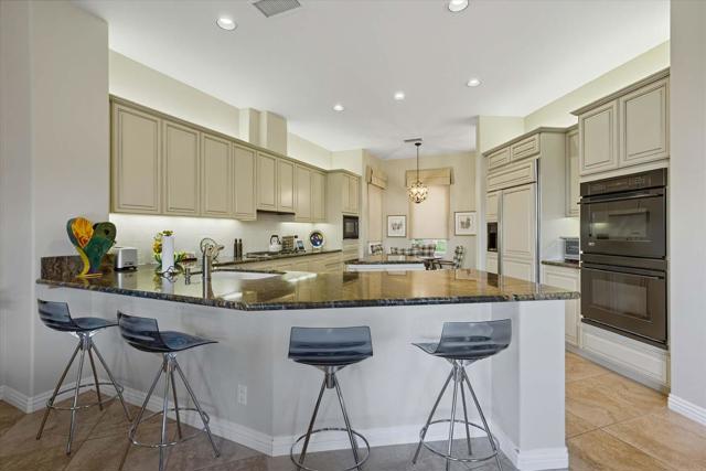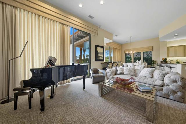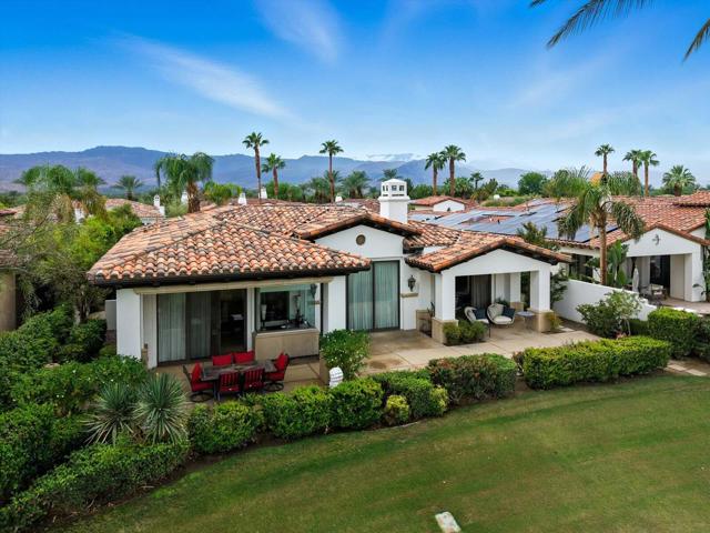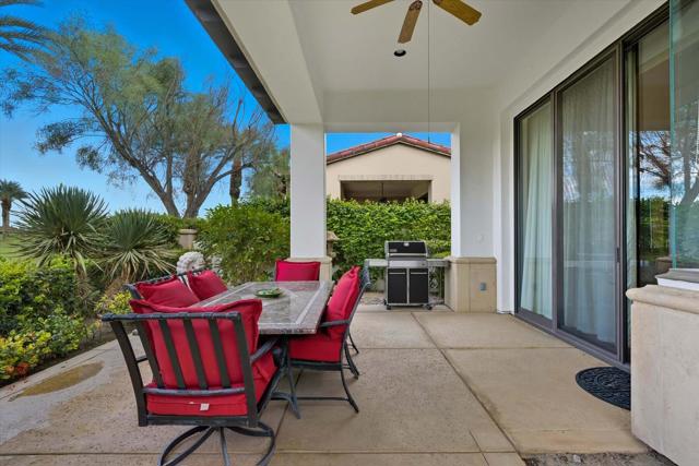 Nestled along the scenic second hole of Toscana's South Course, this exquisite Italianate-style residence redefines sophisticated desert living. With the unique charm of a courtyard pool, this home invites you to immerse yourself in the tranquil ambiance of outdoor leisure.The expansive great room is bathed in natural light, featuring lofty ceilings and a stunning fireplace that exudes warmth. Dual sliders effortlessly bridge the gap between indoor elegance and outdoor relaxation, showcasing enchanting views of the lush golf course and surrounding landscape.At the heart of this artistic haven lies the gourmet kitchen, appointed with high-end appliances paired with custom cabinetry. The generous counter space and inviting breakfast bar make it an ideal setting for casual dining or those leisurely mornings.The serene primary suite serves as your personal sanctuary, offering breathtaking views and convenient access to the serene outdoor space. The en-suite bath is a luxurious retreat, featuring a spacious walk-in shower and dual vanities.Please note, the furnishings depicted in the photos are not currently in the home or included; this home is being sold unfurnished. With its unrivaled elegance and prime location, this remarkable property is a true oasis at Toscana Country Club, where luxury meets desert serenity.
