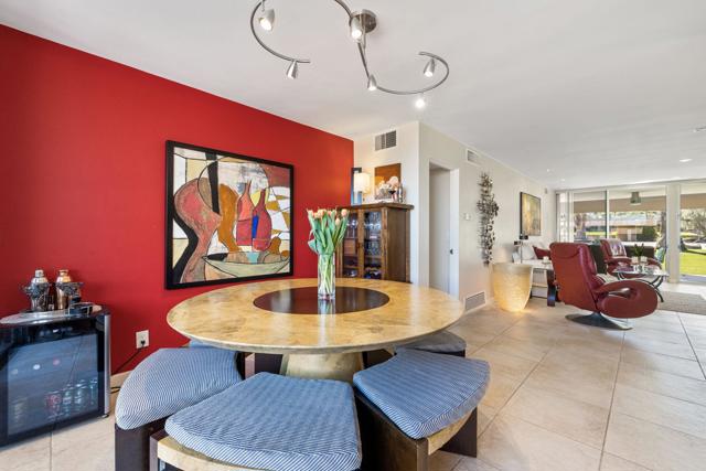Welcome to this desert Lifestyle mid-century modern condo designed by renowned architect William Krisel with a blend of historical charm and modern comfort located in the well-known Sandpiper community of Palm Desert. The spacious open floor plan recently renovated including kitchen cabinets, bathroom vanities, counter tops, stainless appliances, tile shower enclosures, paint and tile flooring throughout, tile extends onto front and back patios. Living area opens to south facing patio providing a comfortable, dining and entertainment venue overlooking green landscape, community pool/spa and Santa Rosa Mountain range. Kitchen and dining area open to the north facing patio casual eating area, private enclosed laundry and view of San Bernardino mountain range. Enjoy morning sunrises and evening sunsets from either patio. A well-appointed Primary bedroom with private upgraded bathroom ensuite and Guest bedroom with access to a fully upgraded Guest bathroom. Covered carport and plenty of guest parking. Sandpiper is located adjacent to hiking trails and adjoining the world renown El Paseo Shopping and Restaurant district.