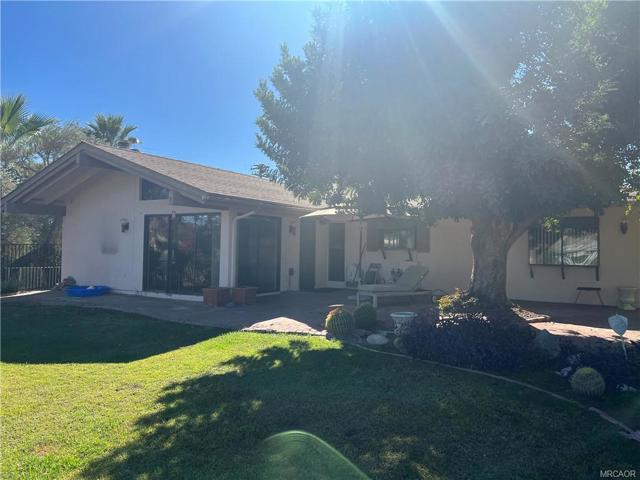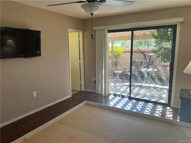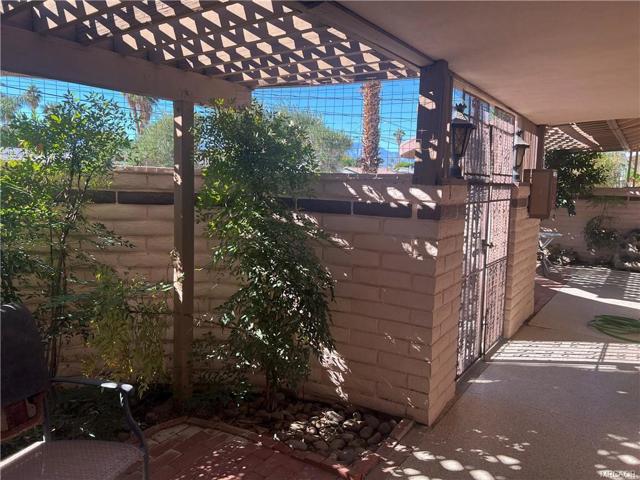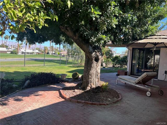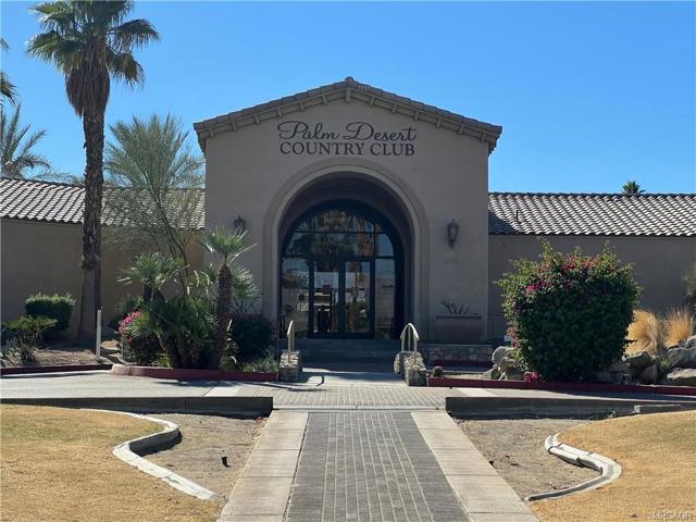 Welcome to Palm Desert Country Club living! This beautiful home sits at the 7th hole of PDCC with beautiful views of the championship 18 hole golf course and mountains. Walk up to the front entrance gate to a secured, walled-in front patio that is also safe for indoor cats to enjoy some outdoor space. Inside you will find a very large living room, dining area and separate family room with beamed, vaulted ceilings, gas fireplace and views out to the golf course. The spacious kitchen has been opened up and upgraded with newer cabinets and quartz countertops. Both bathrooms have also been upgraded with granite counters, newer vanities and the master bath features a large walk-in, tiled shower. The gas water heater was replaced about 3 years ago and the house has 2 forced air units to keep it chilly inside for the summer months. The scenic backyard has a nice blend of fruit trees, palm trees, cactus and lawn. A new 5 foot tall fence was installed last year that has 2 side gates and a gate out to the golf course, great for large or small dog security. There is a convenient, separate laundry room with washer/dryer and a one car garage with plenty of storage. The association($398 annually) is just down the street where you can enjoy the included amenities...2 large swimming pools, a large spa, sauna room and dog park. Enjoy all that Palm Desert has to offer...the new Acrisure arena is less than 10 minutes away, The Indian Wells Tennis Garden is down the street. A large shopping center with grocery and drug stores and nice restaurants is also just 2 minutes away. The Shops at El Paseo in downtown Palm Desert are also just a quick drive. Hurry, this one won't last long!