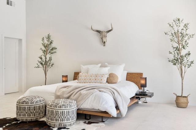 Modern Luxury Meets Desert CharmDiscover elevated living in this fully renovated and beautifully furnished retreat, ideally located in the coveted Silver Spur Ranch of South Palm Desert. This stylish four-bedroom, three-bathroom home was designed with intention--boasting premium finishes, vaulted ceilings, and a seamless blend of form and function.At the heart of the home, an expansive chef's kitchen showcases custom cabinetry, luxurious leather-finish countertops, and top-tier appliances. The oversized island offers both abundant storage and the perfect setting for entertaining. Throughout the interior, sleek tile flooring enhances the modern aesthetic, while all of the bathrooms also feature custom counters, cabinetry, and spacious tiled showers.Dramatic sliding glass doors open to a private backyard oasis with sweeping mountain and down-valley views. The low-maintenance landscaping, highlighted by stylish artificial turf, ensures beauty and convenience year-round. Whether hosting friends or enjoying a quiet evening under the desert stars, this outdoor retreat is designed to impress.Sustainable and serene, this solar-powered home is located on a quiet interior street and just minutes from El Paseo's boutique shopping, fine dining, and world-class golf. A perfect balance of desert elegance and modern convenience--your Palm Desert dream begins here.