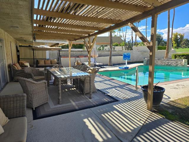 Beautiful large 3 bedroom 3 bath home that includes pool/spa,large covered patio and even a putting green. Gourmet kitchen with granite counters and plenty of space for large gatherings. Living room has a fireplace and is connected to a large family room with flat screen television. Each of the 3 bedrooms also have a wall mounted flat screen . Each bedroom has it's own bathroom.The large master bathroom features a huge jacuzzi bath and a bidet. The home features laminate flooring throughout. The pool area has a dining table and numerous lounges and seating for all. Centrally located minutes from shopping and fine restaurants. Home is offered furnished which can be removed upon request. One of the most beautiful golf courses in the area which allows pay as you play and even seasonal golf packages. Being offered long term with a minimum of 6 months.