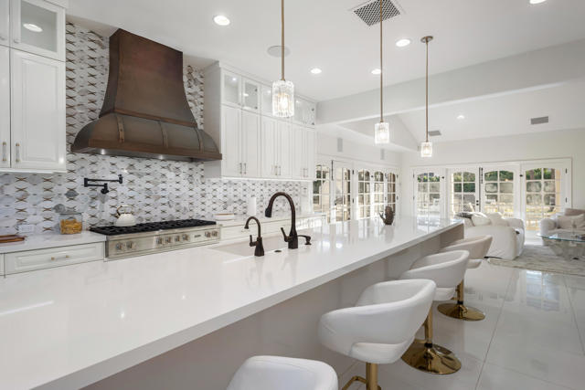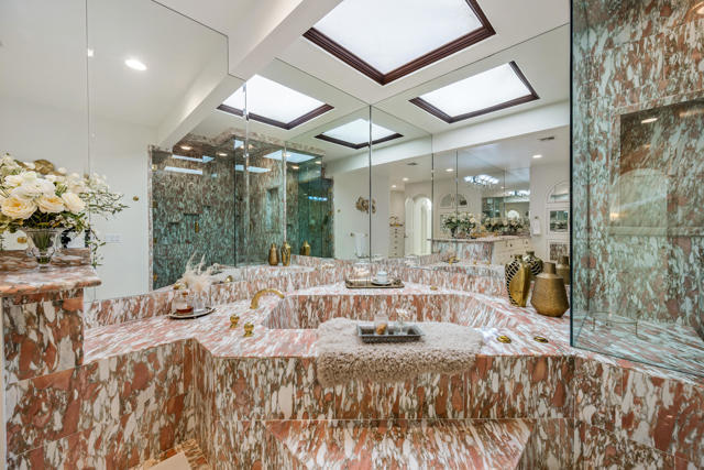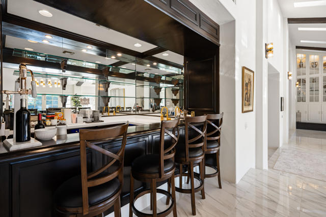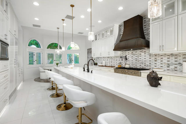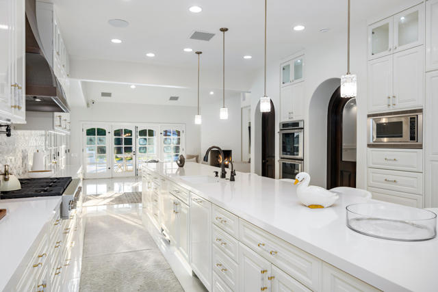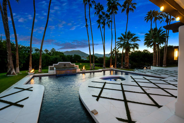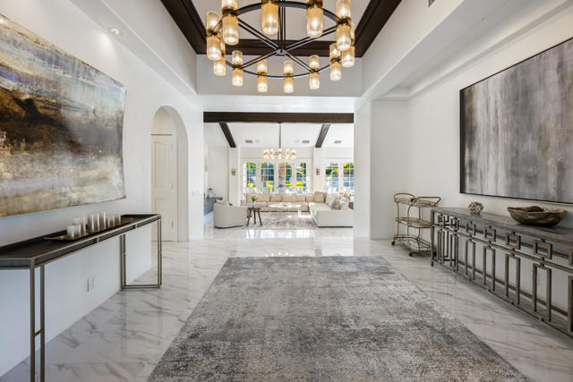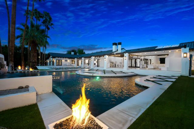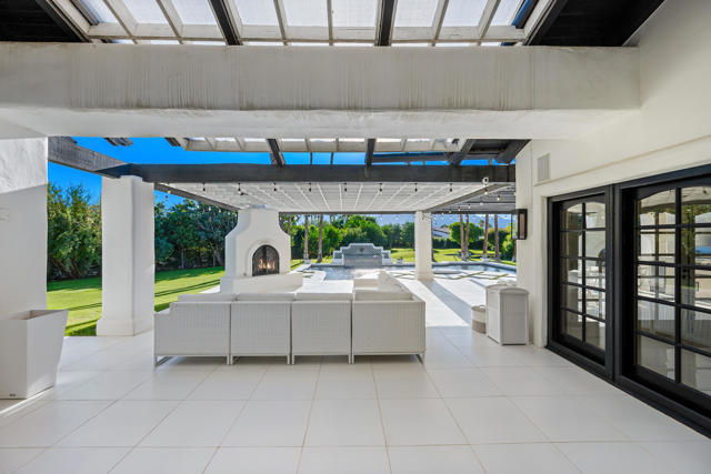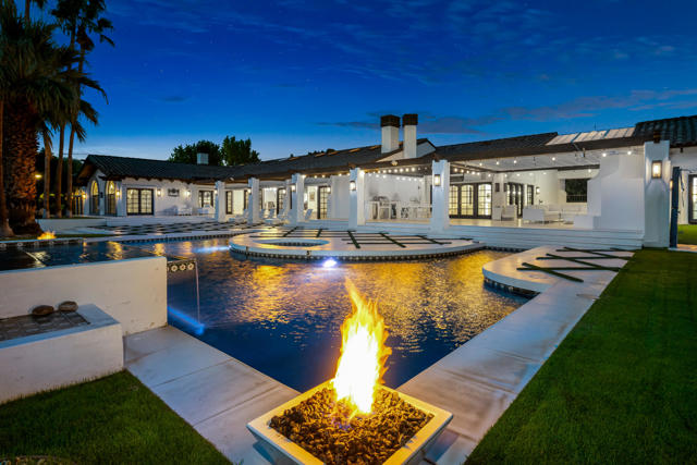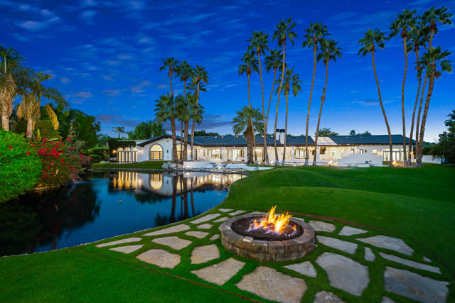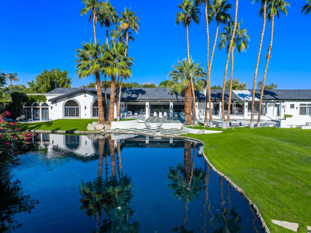 Unsurpassed estate on nearly two acres at La Quinta Polo Estates! Six bedrooms, seven and a half baths, including guest house. Approx. 9,200 sq. ft. on 1.99 acres. Privately gated, circular driveway leads to a towering portico and elegant formal foyer. Step into the imposing great room with fireplace, beautiful floor to ceiling art displays, French doors and custom wet bar. Right off the great room is an inviting den/media room for informal gatherings. The Gourmet kitchen with gorgeous center island is a cooks dream and features a cozy morning room. Further, there is a family room with fireplace, and a formal dining room for effortless entertaining! The impressive primary suite is a true retreat, featuring dual sitting rooms with fireplaces, and luxurious his & hers baths. Follow a meandering path to the detached one bedroom guest house, highlighted by cozy a living room with fireplace and full kitchen, affording your guest complete privacy. There is a lovely outdoor entertainment area with fireplace, firepit and dining area for those warm desert nights. Jaw dropping, park-like grounds boast custom pool & spa with waterfall, regulation sized tennis court, a large private lake, fountains and fruit trees. This is a truly special estate, your own private Oasis! This home has been extensively updated and upgraded and is offered furnished per inventory!