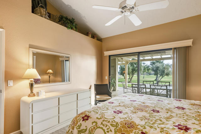 Welcome to this turnkey furnished Champion floor plan with 2 bedrooms, den, and 2 car garage in the guard gated Palm Desert Resort Country Club. This is the largest plan in the community, light, bright, and ready for you to move right in. Open concept great room with gas fireplace and sliders opening onto an expanded covered patio on the 5th tee, with southeast exposure for morning sun and afternoon shade.The den includes a built in desk, storage, and Murphy bed, creating an ideal flex space for office, TV room, or extra guest room. Bedrooms sit apart for privacy and the attached garage adds generous storage for clubs, bikes, and desert toys.Location places you a short stroll or quick cart ride from the clubhouse, dining, pools, tennis, pickleball, and golf. Palm Desert Resort Country Club provides 24 hour guard security, 18 hole championship golf course, large pickleball program, multiple pools and spas, and an active social calendar. Turnkey furnishings allow you to start enjoying the home on day one. Short term rentals are currently permitted, giving you options when you are away.