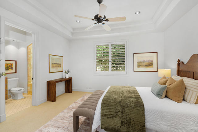 Contemporary Santa Barbara-Style Hacienda in The Highlands at Ironwood Country Club.Experience timeless elegance in this custom-built estate by Cherokee Homes, a rare offering in the prestigious Highlands community. First time on the market, this meticulously maintained, family-owned property is a true desert sanctuary.Perched on a private, elevated lot, the home boasts panoramic views of Eisenhower Mountain, with unforgettable sunrises and moonrises. The architecture blends classic Santa Barbara charm with contemporary sophistication, featuring natural materials, soaring beamed ceilings, and rich hardwood accents.Step through a lushly landscaped courtyard with a tranquil fountain into interiors that exude warmth and craftsmanship. Highlights include: Gourmet kitchen with slab granite countertops, premium appliances, and open-concept design.Expansive family and living spaces with multiple French doors leading to resort-style outdoor areas.Sparkling pool, putting green and mature landscaping, perfect for entertaining or relaxing in privacy.The residence offers 4 en-suite bedrooms, including a private casita, plus 2 powder rooms. The primary suite is a serene retreat with breathtaking views, a spa-inspired bath, and generous walk-in closets.Every detail reflects quality and sophistication--a home that truly leaves no stone unturned.Ironwood Country Club is a private club with two 18-hole golf courses, fitness center, tennis and pickle ball courts, and a beautiful clubhouse. Membership is by application and requires sponsorship.