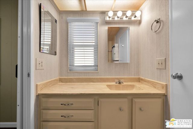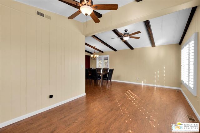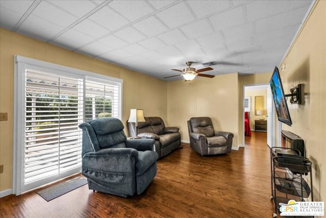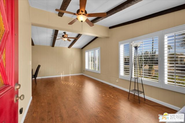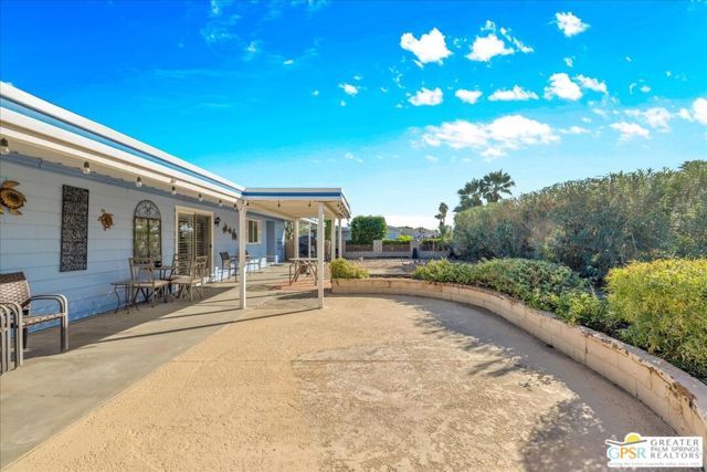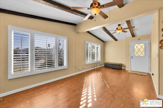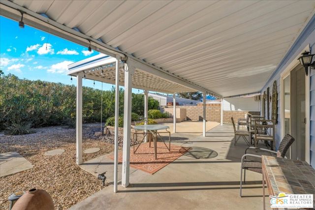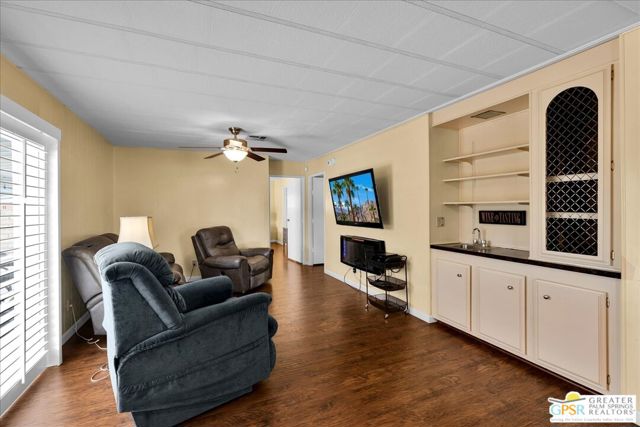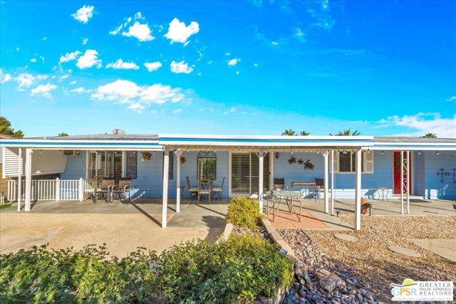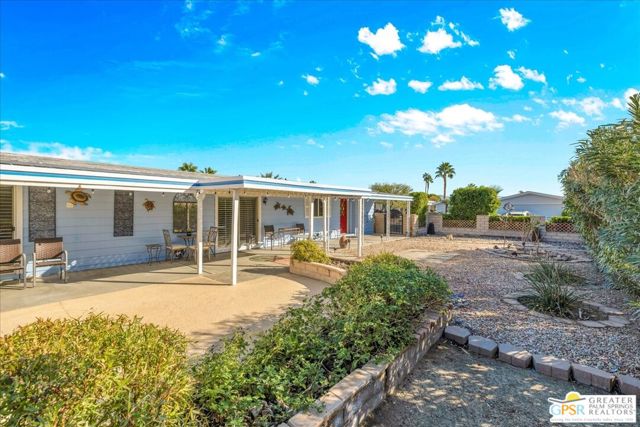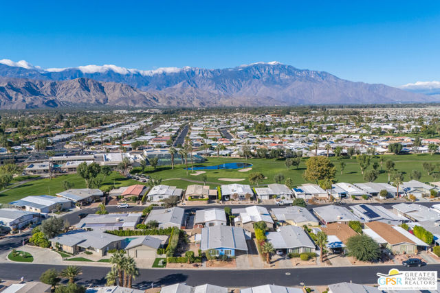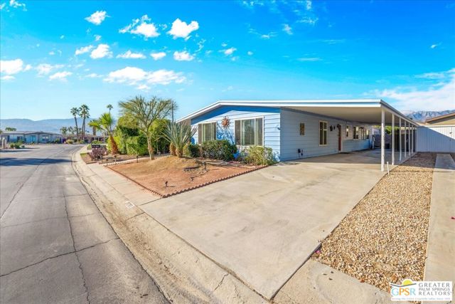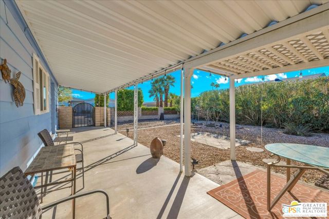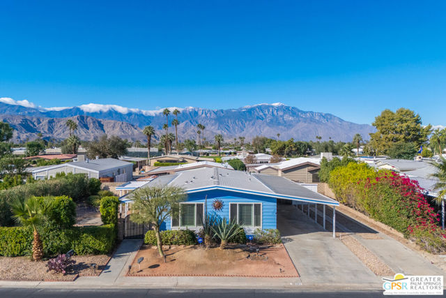Discover the charm of resort-style living in this beautifully maintained manufactured home on a 433A Permanent Foundation, making it eligible for traditional financing and offering peace of mind for both full time and seasonal residents. Set on a spacious 6,534 SqFt lot and located on fee simple land (no land lease!), this property offers true long-term value in the heart of Palm Desert. The oversized yard features gorgeous mountain views and fully landscaped outdoor space perfect for morning coffee, evening gatherings, and effortless entertaining. Inside, the home shows pride of ownership throughout. The remodeled kitchen features granite countertops, a stone backsplash, stainless steel appliances, a gas stove, and a generous granite island with pendant lighting ideal for cooking, hosting, or simply enjoying time at home. Additional highlights include wood-like flooring, plantation shutters, inside laundry room with built-ins, a recently replaced water heater, two driveways and two storage sheds for added convenience. Palm Desert Greens is one of the desert's most desirable 55+ guard-gated communities, offering an impressive list of amenities for a low HOA of just $400/month. The HOA includes unlimited golf on the private 18-hole executive course (no initiation fees), cable TV, internet, trash service, and 24/7 guard-gated security. Residents enjoy a vibrant, active lifestyle with access to a full clubhouse featuring a restaurant and bar, live music, a fitness center, and three pools and spas. Outdoor recreation options include pickleball, tennis, bocce ball, shuffleboard, and beautifully maintained grounds. Situated in the prime center of Palm Desert, the community is close to dining, shopping, theaters, medical facilities, and popular hiking trails. Whether you plan to enjoy daily golf, or explore everything the Coachella Valley has to offer, this home provides the perfect base for year-round desert living. This property truly captures the Palm Desert life style comfortable, inviting, and surrounded by amenities that elevate your everyday life. Move right in and enjoy the best of Palm Desert Greens.