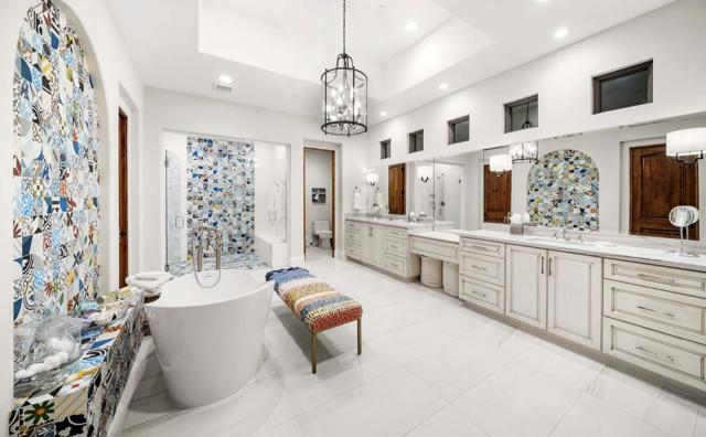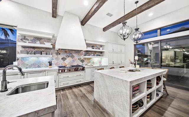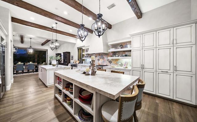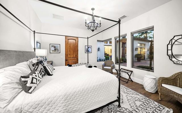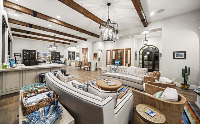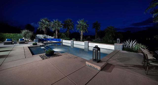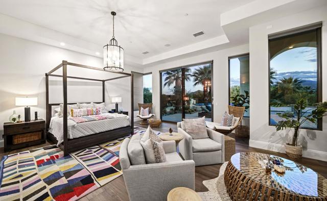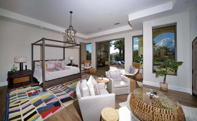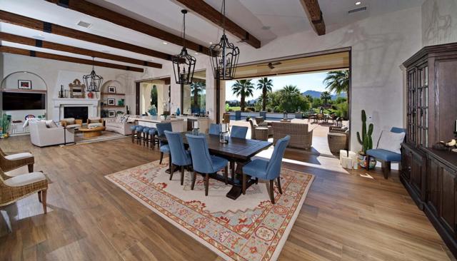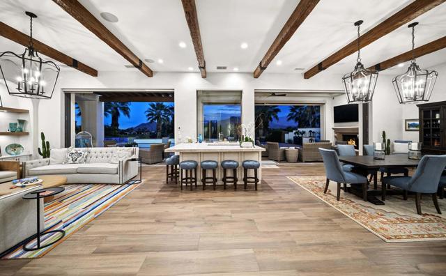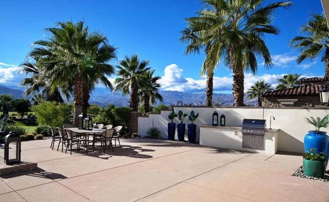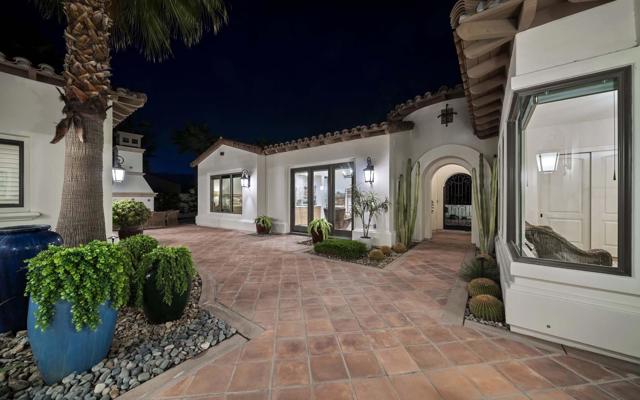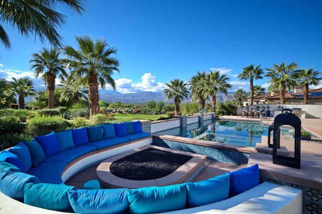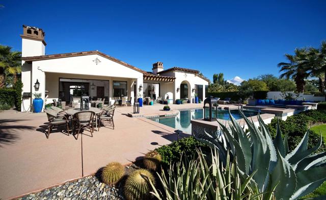 Welcome to this absolutely stunning Early California-style home, perfectly located on the 11th hole of our prestigious north course. This residence features unobstructed south-facing views, allowing you to savor breathtaking mountain vistas from various vantage points within the home and expansive outdoor leisure areas. Adding to its charm, the home boasts an owned solar system, ensuring energy efficiency and cost savings, while also contributing to a sustainable lifestyle. Vibrant pops of color throughout the interior create an inviting atmosphere, showcasing a harmonious blend of elegance and warmth. As you enter, you'll appreciate the impressive architectural enhancements, including an expanded kitchen with dual islands that inspire culinary creativity and effortless entertaining. The open-concept layout is designed for seamless living, accentuated by pocket sliders that invite natural light and connect the indoor spaces with the stunning outdoor environment. Step into the expansive backyard, a true oasis for relaxation and entertainment. Here, you will find ample leisure areas, a sparkling pool and spa for refreshing dips, and an oversized firepit that serves as a gathering focal point. The backyard also features a heater and fireplace under the veranda, ensuring comfort for outdoor enjoyment throughout the seasons, alongside a state-of-the-art water filtration system for pure, refreshing hydration at your fingertips. Finally, immerse yourself in the ultimate audio experience with the Sonos audio system, allowing you to set the perfect ambiance throughout your home and outdoor spaces. This remarkable home offers a unique blend of sophistication, comfort, and picturesque views, making it the perfect retreat for anyone looking to embrace the Southern California lifestyle. Don't miss this opportunity to make it your own!