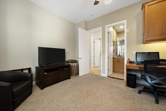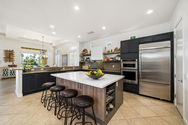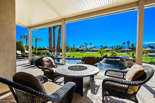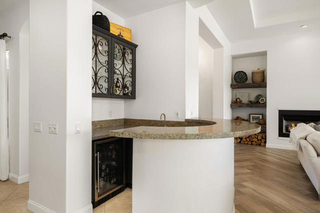 South-Facing Golf Course Retreat on the 16th Fairway - Remodeled with Casita & Resort Amenities. Located on the 16th fairway of the Gary Player Course, this beautifully remodeled, south-facing home captures sweeping golf course and mountain views from one of Mira Vista's most desirable settings. Designed for both luxury and comfort, the residence offers 4 bedrooms, including a private detached casita, plus a dedicated office with a Murphy bed for added flexibility. Inside, soaring high ceilings, wood tile flooring, and an inviting fireplace create a warm and sophisticated atmosphere. The spacious kitchen has been upgraded with granite and quartz countertops, blending style and functionality for everyday living and entertaining. The main living area also features an elegant wet bar, perfect for hosting. The primary bedroom serves as a serene retreat with beautiful natural light and generous space. Guests will appreciate the privacy of the separate casita, ideal for extended stays. Step into your own resort-style backyard featuring a refreshing pool and spa, expansive covered patio, built-in grill, relaxing lounge areas, and a custom putting green overlooking the fairway--an entertainer's dream. Residents of Mira Vista enjoy top-tier amenities, including tennis and pickleball courts, a community pool and spa, and 24-hour guard-gated security. Low HOAs that include cable and internet add to the exceptional value. This home offers the perfect blend of elevated living, stunning views, and an unmatched desert lifestyle. Your Mira Vista golf retreat awaits.