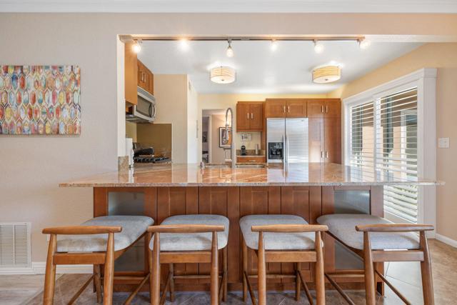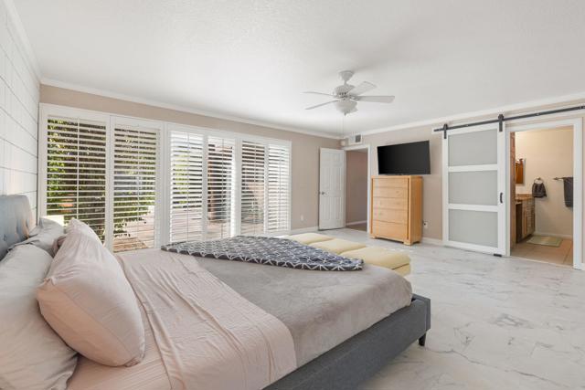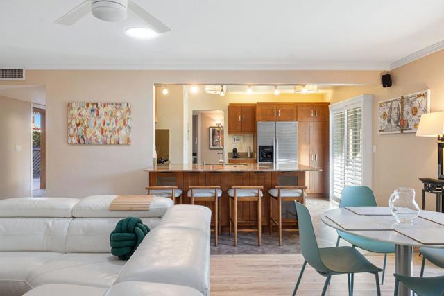 ADORABLE MID CENTURY BUNGALOW This two bedroom/two bath is the perfect desert home or getaway. Located on a cul-de-sac, all on one leve, and walking distance to El Paseo for dining and shopping. Small private complex of just 4 units with shared pool. Great space, lots of light, view of the pool and mountains, plantation shutters thru out, double pane windows and LOW HOA fees. Lovely updated kitchen w/stainless appliances. Washer/dryer inside unit. Large primary bedroom w/large shower in primary bath. Updated guest bath. Inviting large front patio with Awesome mountain views. One car Garage w/storage. Join the Shadow Mountain Social Membership and meet your neighbors. Come take a look! You will not be disappointed!