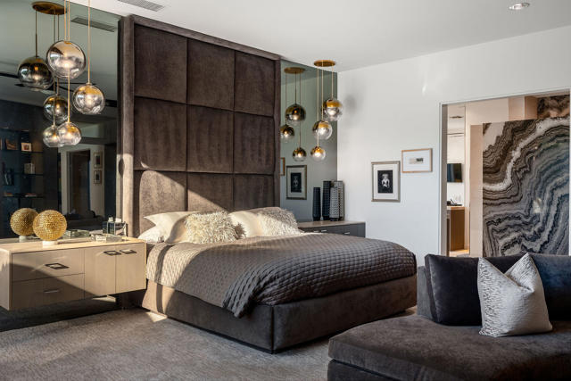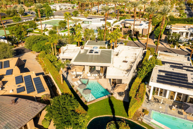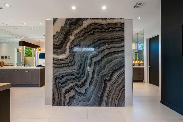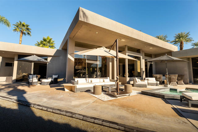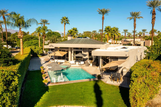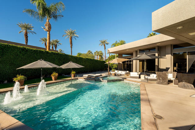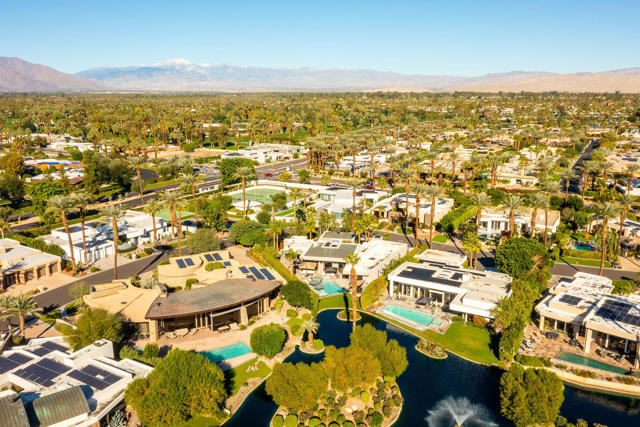 Every now and then a home comes to market that combines all the elements to create the perfect retreat. This is it. This post-modernist mini-resort, sprawling over half an acre, redefines luxury lakeside living with an exquisite main residence and a separate two bedroom casita, all nestled within the guard-gated enclave that is Waterford. Reimagined in 2018 and meticulously maintained, the home seamlessly blends indoor and outdoor living, highlighted by views of the sparkling swimming pool, spa, bocce ball court, and idyllic lake. Step inside to experience the open-concept living areas with floor-to-ceiling windows, dramatic fireplace and sunken wet bar. The gourmet kitchen has high-end appliances, tons of storage and a massive island perfect for entertaining. The lavish primary suite is a haven of relaxation, featuring a spa-like bathroom, dual closets, dual vanities, huge shower, and separate soaking tub, all with private patio overlooking the serene waters. The separate casita features two bedrooms, both with private baths and morning coffee stations share a common office/den. Careful, your guests may never leave! Designed for those who crave sophistication and privacy, this property beckons with multiple outdoor living spaces, total privacy and a sophisticated design esthetic. Whether seeking a luxurious second home or an exclusive escape, this residence promises the perfect getaway, perfectly situated near Palm Springs' vibrant cultural heartbeat, close to everything and away from it all. Exceptional offering.