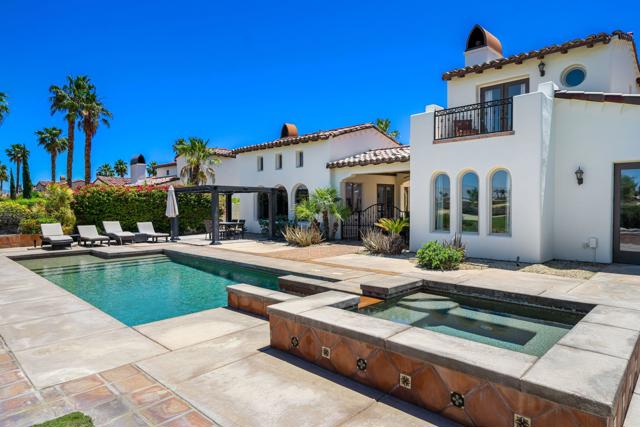 Beautiful home located in the Greg Norman Estates at PGA West! This hard to find popular Plan 4 offering 5 bedrooms, & 5.5 baths. There is 4200 square feet of space in this home as well as a large 14,375 square foot lot that makes for phenomenal outdoor entertaining! Large pebble pool & spa, large patio with build in BBQ for outdoor dining, all overlooking the 10th fairway of the Greg Norman course! Enjoy the outdoor fireplace, fountain & sitting area nestled in an interior courtyard for private gatherings. Expansive living room with a stack stone wall feature with game and sitting area. Culinary kitchen with granite slab counters, stainless appliances, walk in pantry, all overlooking the family room with fireplace and wet bar! The primary suite in this home offers a sitting area with fireplace, spa like en-suite with soaking tub, large walk in shower & two walk in closets. There are 3 guest rooms in the main house and all have their own en-suites offering great privacy! The 5th bedroom is an upstairs Casita up the staircase that is located in the back courtyard offering an en-suite, fireplace, and balcony to take in the views! This home has everything you need for a full time or second home getaway! Offered furnished per inventory!