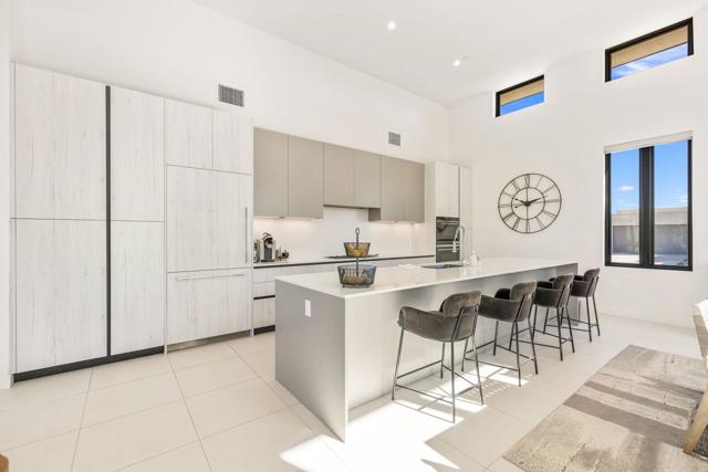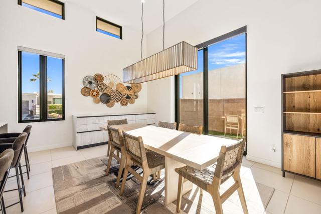 Experience contemporary luxury in this stunning modern home nestled in the coveted Alta Verde Coral Mountain community of South La Quinta. This beautifully designed residence offers 3 spacious bedrooms plus a dedicated home office with a closet, easily functioning as an optional 4th bedroom, along with 4 stylish bathrooms, including a serene primary retreat featuring an oversized walk-in shower and a sleek freestanding soaking tub.Step inside to a grand open floorplan highlighted by soaring ceilings and flooded with natural light. At the heart of the home is a chef's kitchen boasting a large center island, stainless steel appliances, quartz countertops, a farmhouse sink, modern flat-panel cabinetry, ample storage, and a convenient dry bar with a wine chiller. Multiple glass sliders seamlessly blend indoor and outdoor living, opening to a covered patio and a modern, resort-inspired backyard complete with a sparkling pool and spa.Designed with energy efficiency in mind, this home also features a solar panel system to keep utility costs low. Offered fully furnished per inventory, this turnkey modern masterpiece is ready for you to enjoy from day one.