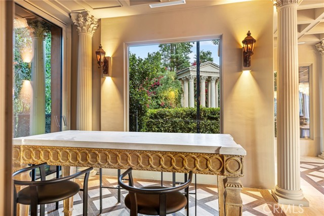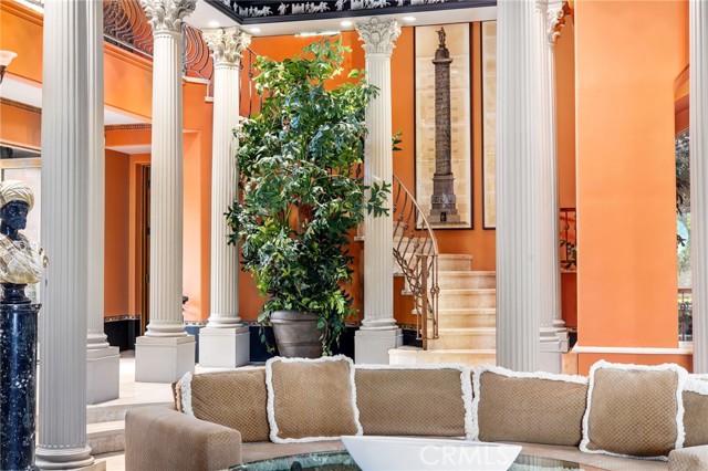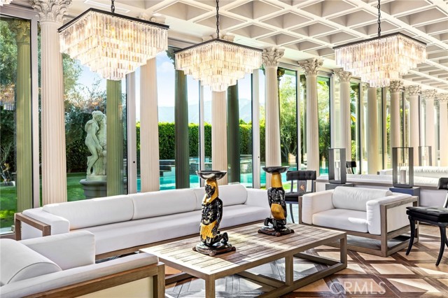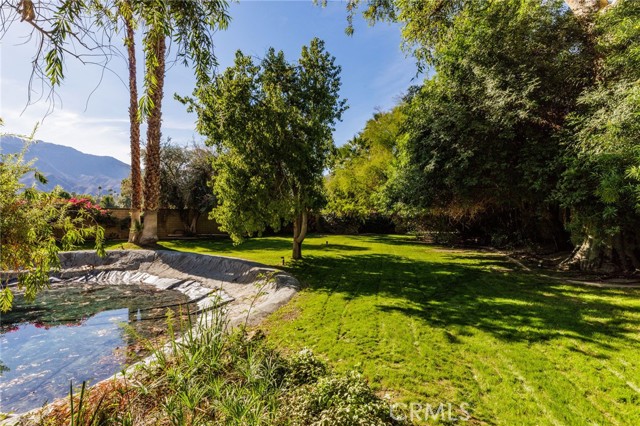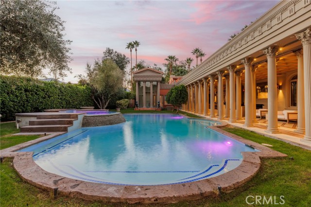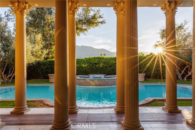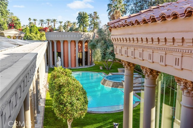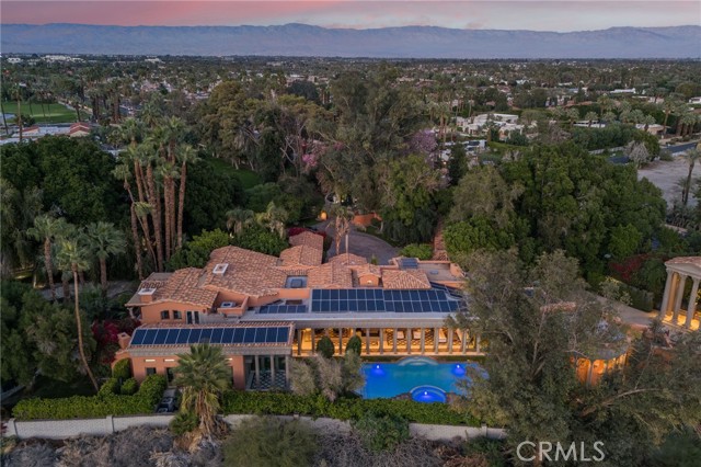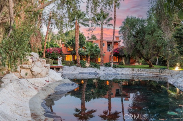 A rare architectural statement in Rancho Mirage blends luxury, artistry, and bold design across its 1.55-acre compound. With 9 bedrooms total, the main home offers 4 bedrooms, including an upstairs suite featuring a private full bath, three balconies, and a kitchenette. The separate guest house includes one bedroom, a full kitchen, and a full bath, while four additional guest quarters sit just behind it, each with its own private bathroom. Floor-to-ceiling columns, sliding glass walls, and dramatic indoor–outdoor flow create a resort-like atmosphere anchored by a private pond, lap pool, and main pool. Every space feels sculptural, intentional, and primed for creativity. Designed for the entertainer and the big thinker, the estate offers expansive gathering areas, a grand lanai that opens fully to the grounds, and multiple zones for hosting, relaxing, or showcasing art. With its eclectic character, sweeping mountain views, and unforgettable presence, this property stands as a true one-of-a-kind opportunity