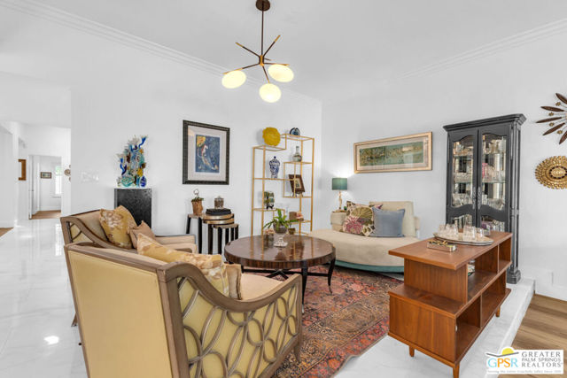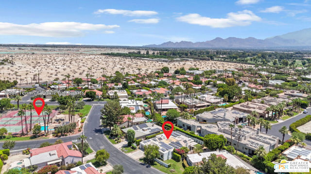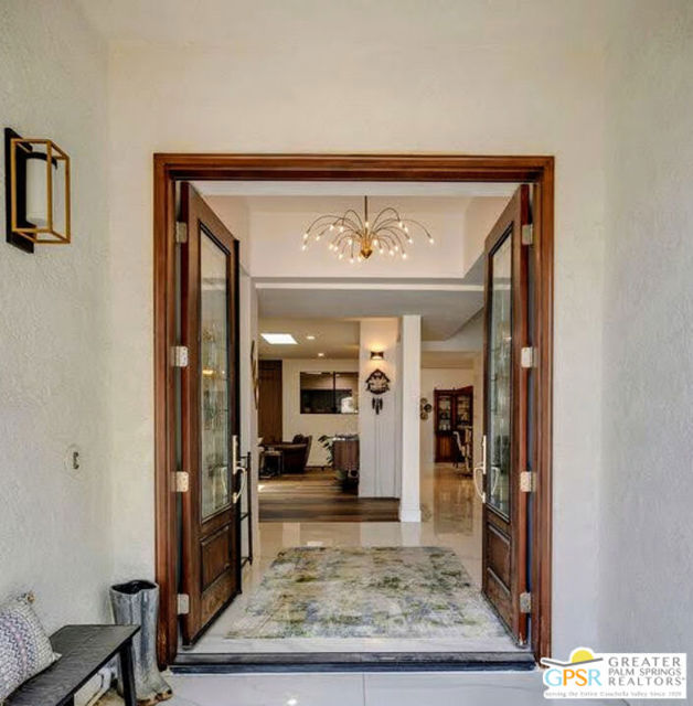 This isn't just a house; it's a space that inspires. Natural light pours in through skylights, highlighting vaulted ceilings and gallery-worthy walls that are perfect for art lovers. The open layout offers easy flow for entertaining and peaceful separation when you want privacy. Three spacious living areas create flexible options for gatherings, quiet nights at home, or showcasing your favorite pieces. The primary suite has its own private wing with a sitting area (currently an office), a secluded patio, and a spa-like bath. Two additional en-suite bedrooms, including one oversized, give guests plenty of comfort. A custom bar with wine and beverage fridges connects to a TV wall designed for movie nights or game-day energy. The modern kitchen features a walk-in pantry, abundant storage, and newer appliances, all while keeping the chef part of the action. Two custom fireplaces add warmth and visual impact. Outside, a grassy yard welcomes kids and pets, and a 10-person swim spa offers year-round relaxation. The community amenities include a pool, spa, tennis, and pickleball courts. Located beside the world-famous Sunnylands estate and across from Mission Hills, you are minutes from luxury shopping, everyday conveniences, and the upcoming Disney Cotino community. With front yard care included in the HOA dues and 60 leased solar panels for energy efficiency, this home is easy to lock and leave or enjoy full-time. Come see why 12 Santa Clara Drive isn't just a home; it is a beautifully lit, thoughtfully designed stage for your next chapter of elevated desert living.