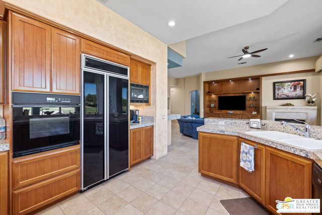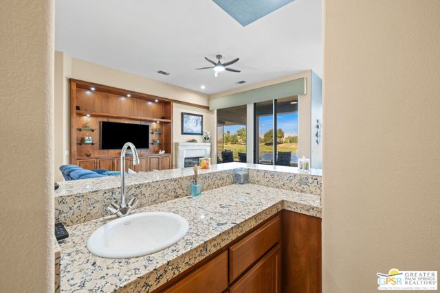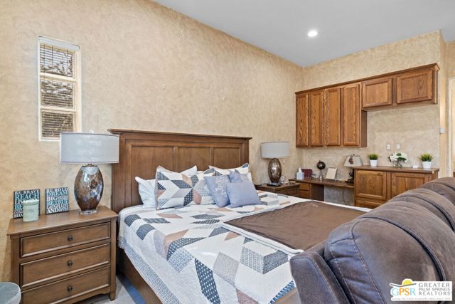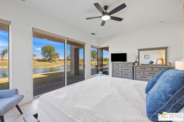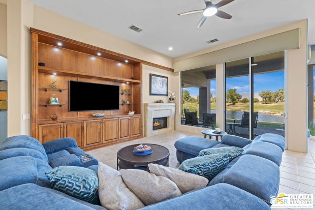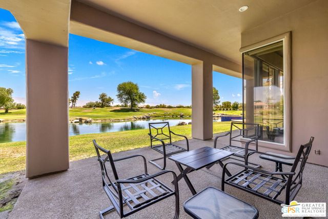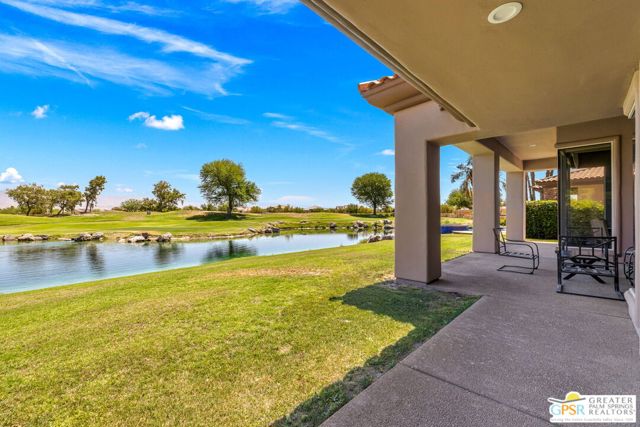 Introducing this fantastic opportunity, offering the lowest price by a considerable margin in this desirable community. This home showcases a highly sought-after floorplan with an attached large casita in the coveted Legacy at Mission Hills Country Club, offering a magnificent Lakefront, Fairway, and Mountain views. Enter a gated, private courtyard and notice newly painted exterior that leads to the inviting glass door entry and the expansive great room. Within the great room, enjoy a fireplace, custom built-in cabinetry, high ceilings, and an entertainer's bar. This area seamlessly flows into the open-concept kitchen, complete with granite countertops and a corner window framing picturesque lake vistas. Adjacent to the kitchen, the dining area invites residents to indulge in meals while enjoying the stunning lakeside panorama. A den/office or potential fourth bedroom is conveniently positioned off the Great Room, accompanied by a nearby bath. The luxurious master suite boasts commanding views of the lake, golf course, and mountains with frameless windows, along with a double vanity bath a spacious walk-in closet, and newly updated floors. Additionally, a guest bedroom with an en-suite bath and an expansive attached casita provide ample accommodation for extended stays. The casita features a living area, kitchenette, studio/gym space, and en-suite bath. Legacy ownership includes Mission Hills Country Club social and fitness membership. Your desert oasis awaits!