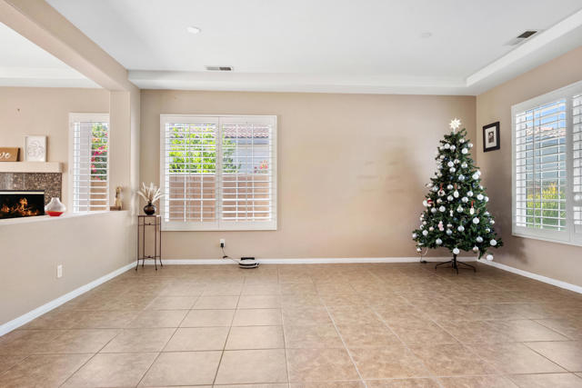 Welcome to this inviting 4-bedroom home with a den (optional 5th bedroom) located behind the gates of Esplanade. Inside, the formal living and dining areas flow into a spacious family room with a cozy fireplace. The kitchen offers granite countertops, a skylight, an island with bar seating, and a breakfast nook with a built-in desk.The primary bedroom includes sliding doors to the backyard, an oversized walk-in closet, and an ensuite with dual vanities, a soaking tub, and a separate shower. Two bedrooms share a guest bath with dual sinks, while the fourth bedroom enjoys its own private bathroom.Additional features include a large laundry room with storage and a sink, a two-car garage, and hallway skylights that bring in wonderful natural light. Close to schools, parks, dining, and shopping, and located in the Imperial Irrigation District for lower electricity costs. Don't miss this fantastic Esplanade home!