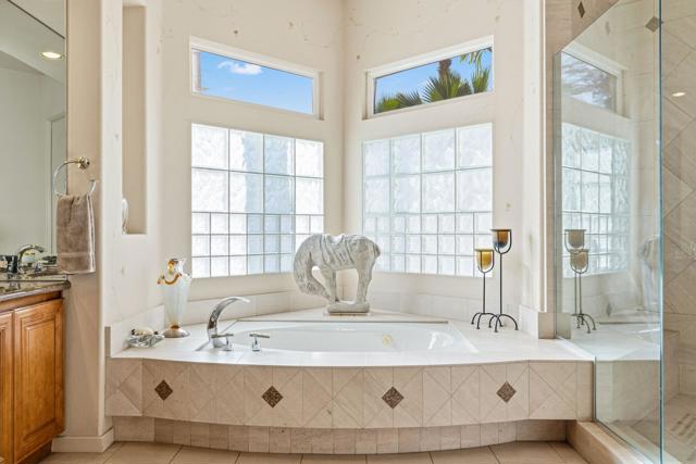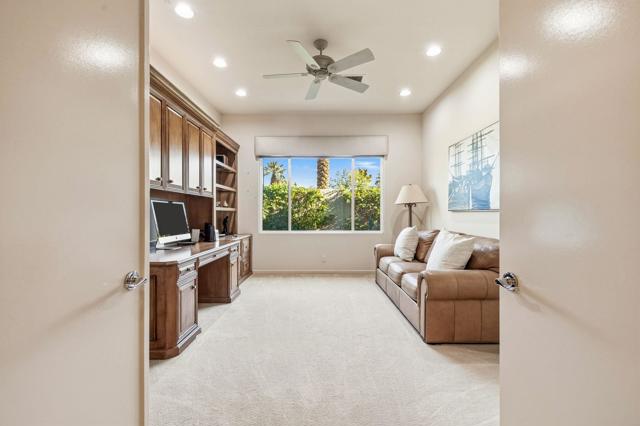 Set on a generously sized, private lot within Indian Ridge Country Club, this desirable Ocotillo 2 floor plan offers the perfect balance of space, comfort, and resort-style living. The open yet well-defined layout features a separate dining room, kitchen, living room, and family room, ideal for both everyday living and entertaining. The spacious primary suite serves as a peaceful retreat, while two additional guest bedrooms each with its own en-suite bathroom provide exceptional comfort and privacy for family and guests. Outdoors, enjoy the quintessential Indian Ridge lifestyle with a private spa and expansive patio overlooking the 9th hole of the Arroyo Golf Course, framed by tranquil lake views an ideal setting for relaxing, dining al fresco, or entertaining under the desert sky. Residents of Indian Ridge Country Club enjoy access to world-class amenities including two Arnold Palmer signature golf courses, tennis and pickleball, a state-of-the-art fitness center, full-service clubhouse, dining, and a vibrant social calendar all in one of Palm Desert's most sought-after guard-gated communities. Home is being sold furnished per inventory list. Golf or Club membership available.