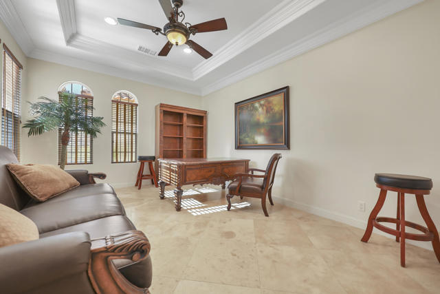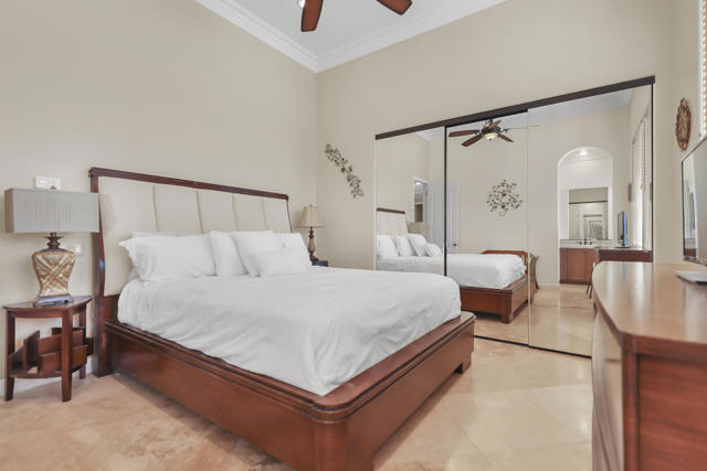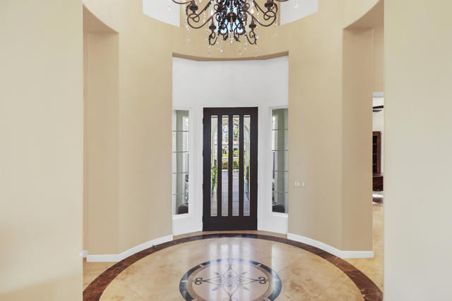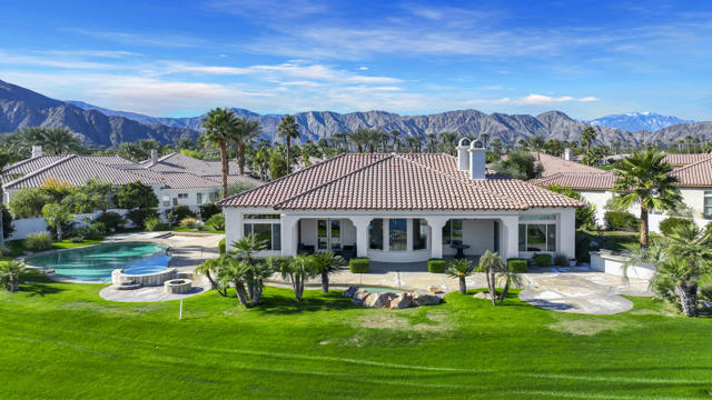 Huge lot at end of cul-de-sac with really awesome views across the driving range, multiple fairways and lakes, the spectacular 18th hole, and the clubhouse. And a gigantic side yard with a putting green! The court entry leads you into a soaring 18', skylit rotunda foyer that opens up to BIG a big 43' Great Room, a big 17' Office/Den, a big 35' Master Suite over 4400 sf. of spacious luxury. Guests?...a courtyard casita plus two guest rooms with their own sitting room (or media room or family room). The Great Room with its bow-window dining room captures the view and is perfect for entertaining. Outside the lush landscaping, custom pool & stream, and the huge side yard extend the entertaining and frame the view. Magnificent fireplaces, gourmet kitchen with European-style maple cabinets, slab granite counters, built-in fridge; switch-start fireplace, Roman tub in master bath.