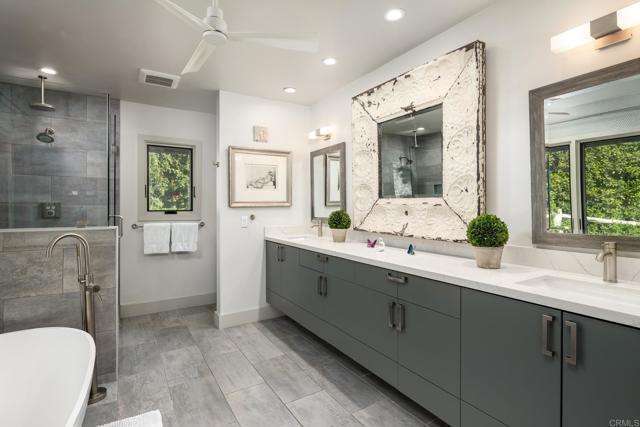 Beautifully remodeled single-level home in the heart of the Village of Rancho Santa Fe. This private three-bedroom, three-bath residence is tucked away at the very end of a charming enclave, offering exceptional tranquility and complete privacy—just moments from the gorgeous golf course and all village amenities. Tastefully updated throughout, the home features stunning new hardwood floors, beautifully redesigned bathrooms, and a luxurious primary suite with a spa-like soaking tub. The inviting family room is anchored by a cozy fireplace, while an additional fireplace off the dining room creates a warm and elegant setting for entertaining. The updated kitchen boasts new appliances and sleek quartz countertops, seamlessly blending style and functionality. The thoughtful single-level layout is ideal for effortless living, while the private backyard provides a peaceful retreat for relaxing or entertaining. Ample parking includes a two-car garage, making this home perfect for a lock-and-go lifestyle or full-time village living. Enjoy the convenience of walking to newly opened restaurants, boutique shops, and the iconic village hotel—all just steps away. A rare opportunity to own a move-in-ready home in one of Rancho Santa Fe’s most desirable locations.