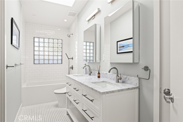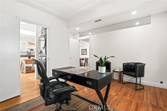 Situated on a quiet street in the heart of Sunset Park, this exceptional residence welcomes you with a thoughtfully designed and wonderfully flexible floor plan that feels as effortless as a coastal breeze. Beautifully refinished hardwood floors sweep throughout approximately 2,500 square feet of living space, creating a seamless flow from room to room. With 4 bedrooms, a bonus room, and 2 beautifully remodeled baths, this home is ideal for a larger family or multigenerational living. Two bedrooms are set apart from the primary suite, while a dedicated office/bedroom at the back is perfectly positioned for in-law visits, guests, work-from-home ease, or even movie screenings using the built-in projector and surround sound. From the moment you step inside, you’re greeted by a formal entry sitting area that opens to a dedicated dining space, perfectly framing the light-filled, open-concept kitchen—bright, cheerful, and designed for gathering. The kitchen boasts abundant cabinetry, stainless steel appliances, induction stove, and elegant granite countertops, making it as functional as it is inviting. Just beyond, an additional expansive sunken family room anchored by a cozy fireplace works as a versatile multipurpose space, featuring beautiful built-in cabinets and bookshelves —perfect for entertaining, relaxing, or creating lasting memories. Expansive glass doors lead you outside to a charming redwood deck that spills into a serene backyard oasis, thoughtfully landscaped with lush foliage and mature lime, fig, and avocado trees. Peaceful to the eye and calming to the soul, this is your private retreat—an ideal place to unwind and let the day melt away. Adding even more value, the home features an additional gated parking space, solar energy, new roof, tankless water heater, updated plumbing and electrical, and is truly in outstanding condition. The ADU-ready, alley-facing 2-car garage features drywalled interior, lofted storage and sleek epoxy flooring—an incredible opportunity for future expansion or income potential. All of this in a prime location within the highly acclaimed Santa Monica school district, walking distance from Grant Elementary, John Adams Middle School, SMC, Clover Park, Virginia Park, and the Pico and Fairview libraries. Enjoy unbeatable convenience to markets, boutiques, restaurants, and everyday services. This is more than a home—it’s a lifestyle.