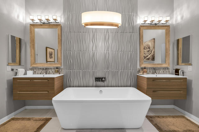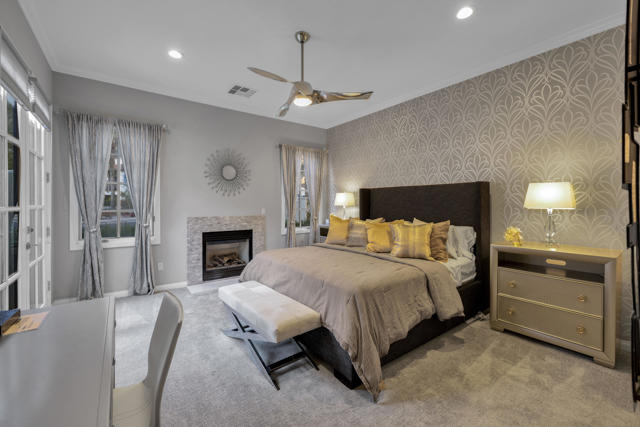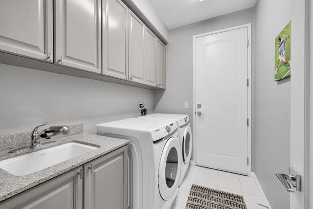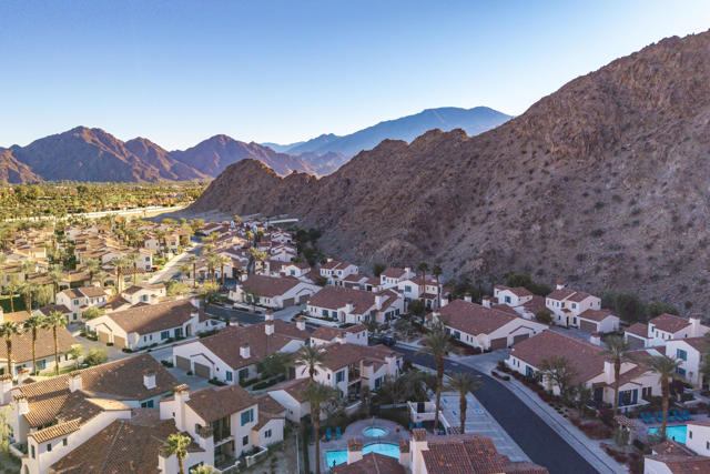 Elegantly upgraded. Largest Floor-Plan Furnished! Beautifully upgraded two-story townhome offers an open Great Room with high ceilings, fireplace, large dining area. Sweeping views of the Santa Rosa Mountains across your private outdoor patio area. Direct access to one of the quiet pools. First floor Primary suite with fireplace and double French door and step out on private patio. Double custom closets, leads you to a bath with separate soaking tub, shower stall and dual sinks. First floor guest suite with nice separation from Primary also features full bath with separate tub, shower stall and dual sinks. Private second floor bedroom with king and its own ensuite tub, shower and dual sinks. Powder room off entry. Laundry room with sink and direct access to 2 car garage. Tankless water heater, Electric car charger in the garage. Lower energy cost with IID Electric. Legacy Villas Resort Community offers it all! A 11,000 sq. ft. clubhouse for relaxation & entertainment. Seasonal poolside restaurant, The Legacy Grill, state-of-the-art fitness center, tranquil Date Palm Hammock Garden, 12 sparkling saltwater pools, two of which are exercise lap pools, and 11 spas. Common grounds feature 15 fountains and scenic walking trails and EV charging stations. The main pool area offers poolside cabanas, showers, kids' water fixtures, and a walk-in beach pool. Just outside the guarded gates is famous La Quinta Resort and Club, offering golf, tennis, pickleball, fine dining, and Spa. (Membership options available.) A short distance to Old Town La Quinta. Legacy Villas is fully authorized for SHORT TERM RENTALS, making it an excellent opportunity for investment when you're not enjoying this beautiful getaway home.