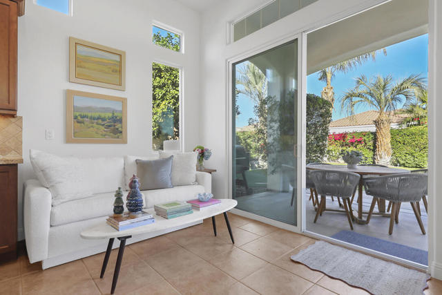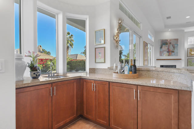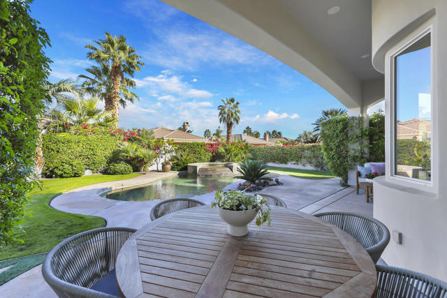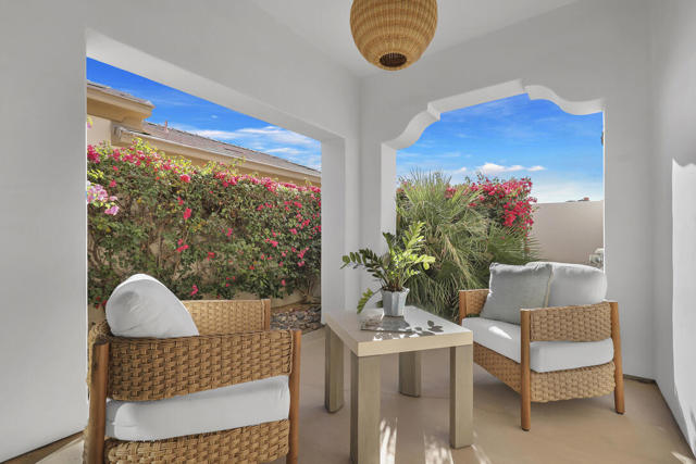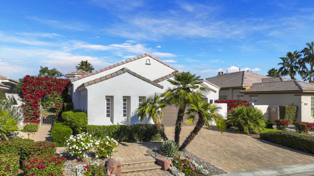 A Thoughtfully Designed Retreat at the Heart of Mountain View Country ClubThis home is defined by intention -- from its quiet interior-lot setting to the way each space supports an active, connected lifestyle. The arrival experience is both graceful and calming. A side walk-up draws you away from the street and into a gated courtyard, where mature landscaping and a bougainvillea-draped arched entry immediately set a tranquil tone. Inside, a welcoming entry opens to an expansive kitchen, dining, and living area designed to live far larger than its square footage. The open footprint ensures the kitchen remains part of the gathering, while the scale of the space prevents it from ever feeling crowded.The home's layout balances openness with privacy. Each of the three bedrooms are large and of course ensuite, offering exceptional space and privacy for owners and guests alike. The primary suite offers a secluded garden patio. Enjoy this as a quiet place to enjoy morning coffee as southern mountain views glow in the sunlight or to unwind at the end of the day. Step outside to your own private oasis with this interior lot featuring a saltwater pool and spa, a built in BBQ, fruit trees, and a covered patio area. Lush landscaping and a thoughtful design create a resort-like environment perfect for entertaining or everyday enjoyment.A two-car garage with a dedicated golf cart bay eliminates daily friction, allowing effortless access to the cart without shuffling vehicles or parking on the street -- a feature that proves invaluable for those who truly enjoy the club.Ideally located close to the clubhouse, fitness center, pickleball and tennis courts and the first tee box of a meticulously maintained Arnold Palmer golf course, this home places you at the center of Mountain View's vibrant lifestyle. Enjoy a community known for it's active social calendar, resort style amenities and a welcoming atmosphere.This is an exceptional opportunity to enjoy refined living in one of the deserts most sought-after country club communities.