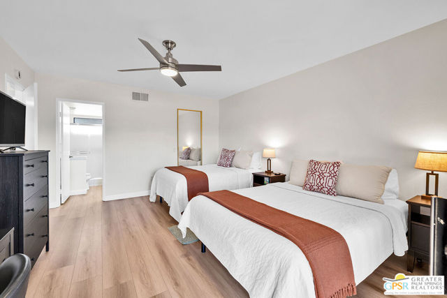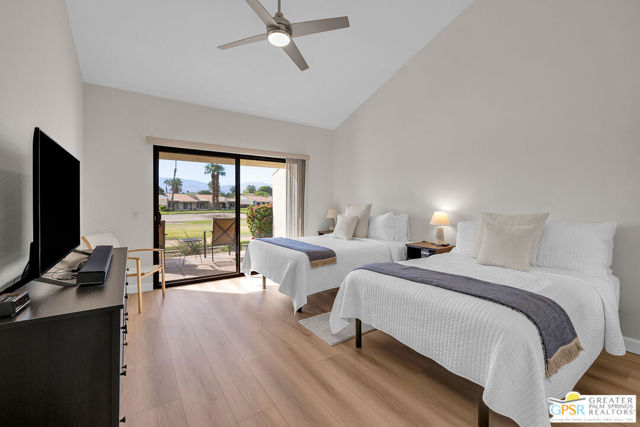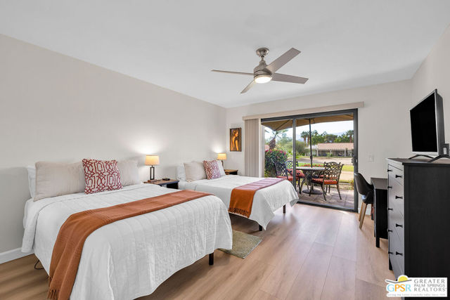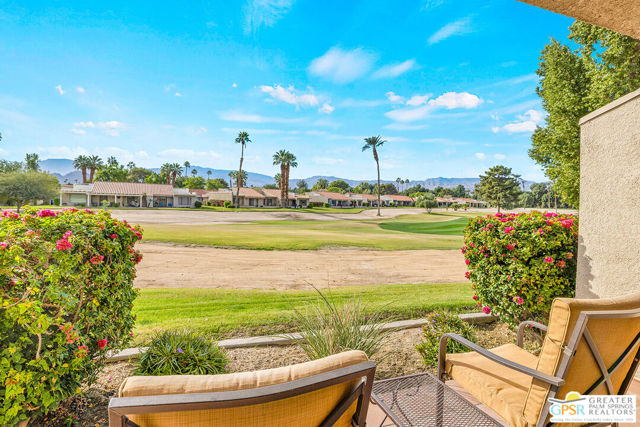 Discover 77207 Preston Trail, a beautifully updated and fully furnished two-bedroom, two-bath condo offering the highly desirable Vintage floor plan and the rare convenience of a full two-car garage. Perfectly positioned with full southern exposure, this single-level residence enjoys sweeping, unobstructed views of the golf course fairwaysan exceptional setting for relaxed desert living. High ceilings create an open, airy feel throughout the main living areas, while large windows frame lush green views and fill the space with natural light. The well-appointed kitchen is designed for both everyday living and entertaining, featuring modern upgrades and direct sight lines to the fairway. The spacious primary suite opens directly to the patio and includes a generous closet and an en-suite bath with a walk-in shower. The guest bedroom sits on the opposite side of the home for added privacy and is served by a full guest bathroom, ideal for friends or Family. Located within Palm Desert Resort Country Clubaffectionately known as "The Resorter"this gated community spans 960 homes and offers a truly resort-style lifestyle. Amenities include an 18-hole par-72 championship golf course, 20 heated pools and spas, 28 pickleball courts, 7 tennis courts, and a 42,000-square-foot clubhouse with restaurant, bar, and fitness center. With an active social calendar, clubs, and classes, all set against the dramatic Santa Rosa and San Jacinto Mountain backdrop, this is desert living at its best. Contact agent for a private showing.