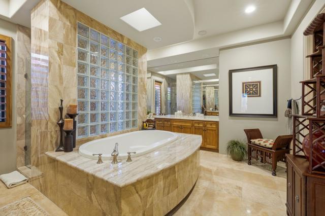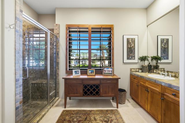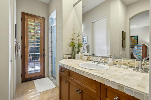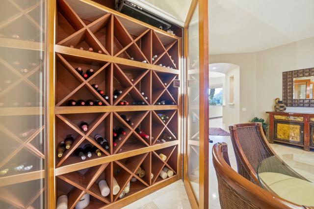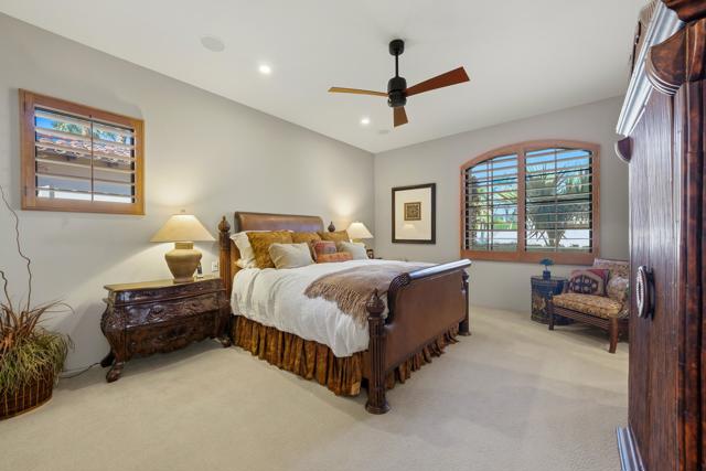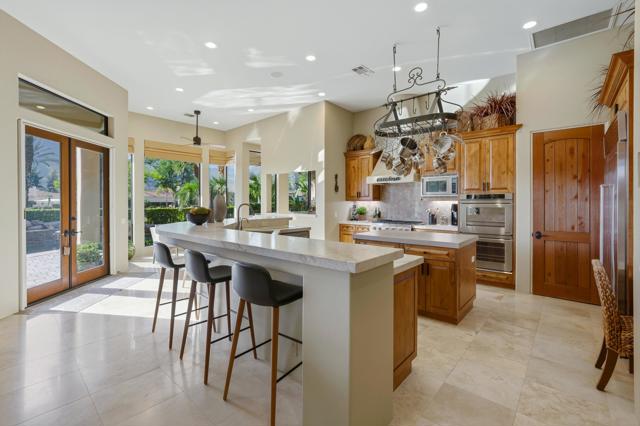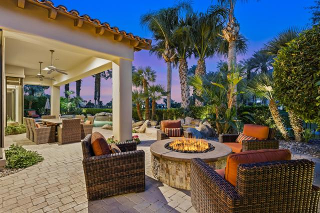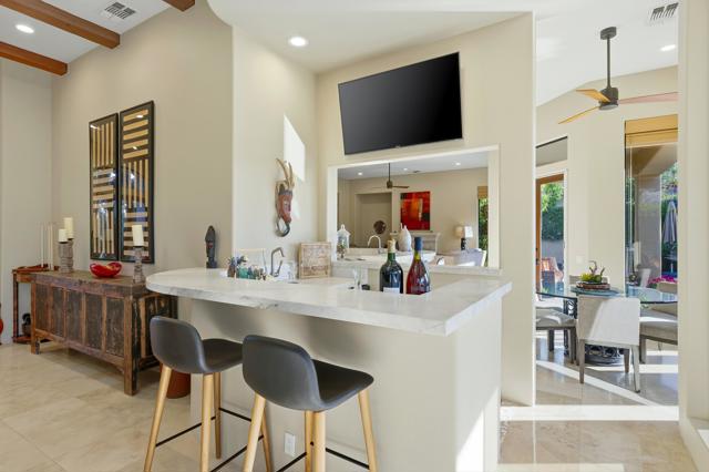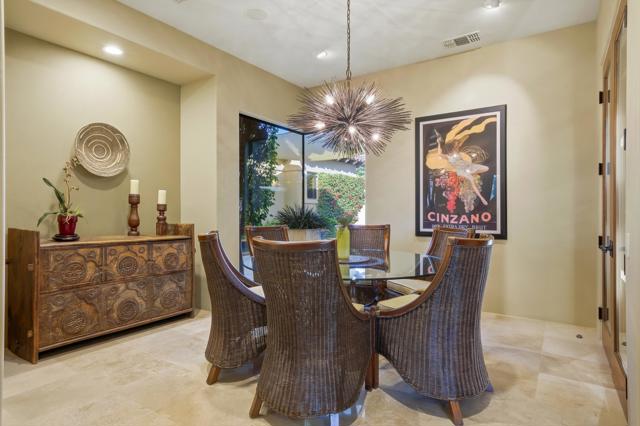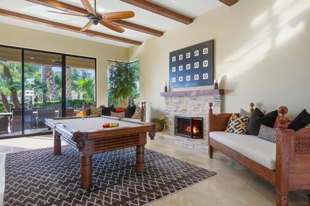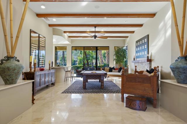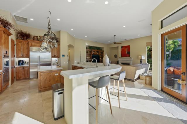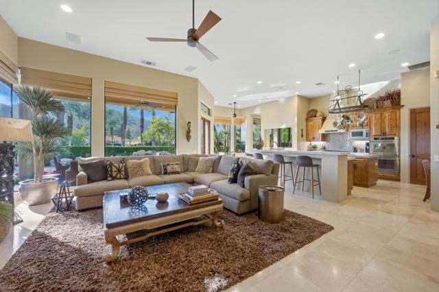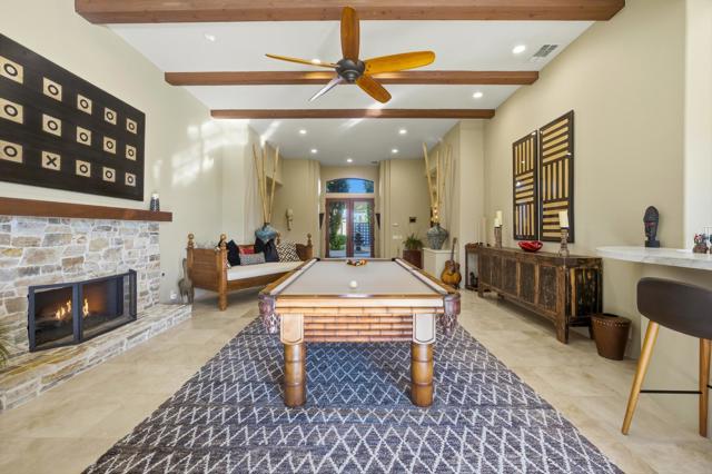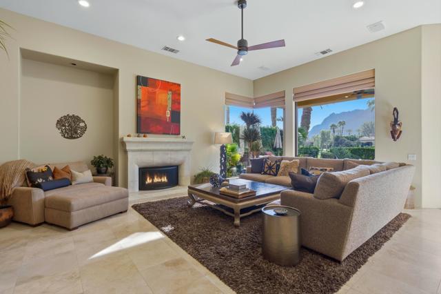 Where Elegance Meets Uncompromising Quality. Nestled on the 4th hole of the prestigious Citrus Golf Course, this exquisite home exemplifies refined luxury at its finest. With sweeping views of the lush green, the Santa Rosa Mountain and impeccable design throughout, every corner of this residence exudes sophistication and comfort.As you enter, the graceful fountain in the courtyard sets the tone for what lies within -- a seamless blend of traditional style and unparalleled craftsmanship. Upon stepping inside, a welcoming game room leads the way to an elegantly appointed wet bar, perfect for entertaining. The recently renovated kitchen boasts top-tier appliances, natural quartz countertops, custom wood cabinetry, and other high-end finishes that elevate the space to a culinary haven.The expansive great room opens up to a truly spectacular outdoor retreat. From the built-in BBQ and gas firepit to the resort-style pool complete with a spa and waterfall, this backyard oasis offers both relaxation and entertainment in equal measure. For those who appreciate the finer things, a private Jacuzzi, positioned perfectly for golf and tennis enthusiasts, adds an extra touch of luxury.Pet owners will find the meticulously landscaped grounds, featuring a sidewalk with two removable patches of artificial turf and a doggy door. The home is also fully enclosed, ensuring both privacy and security.The spacious primary suite offers a serene escape with direct access to the backyard, dual large walk-in closets, and a layout that ensures total privacy for its occupants. Two generously sized guest rooms, each with en-suite bathrooms, offer the utmost comfort and privacy for visitors. Additionally, the charming casita with a kitchenette and full en-suite bathroom provides an ideal retreat for family or guests.The oversized three-car garage, complete with an epoxy-coated floor and extensive storage cabinets, offers ample space for both vehicles and personal belongings.Turnkey furnished and move-in ready, this home presents a rare opportunity to experience the ultimate in luxury living.