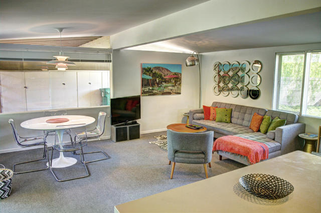 Don't miss the chance to embrace the unique desert lifestyle with this stunning Mid-Century home in South Palm Desert. Designed by the acclaimed modernist architect Walter S. White, this post-and-beam masterpiece perfectly reflects White's vision of contemporary desert living--featuring bold rooflines, expansive glass, and open spaces that harmonize indoor and outdoor living. More than just a piece of architectural history, this home offers a lifestyle of convenience and luxury. Take a golf cart ride to the renowned El Paseo shopping and dining district, or explore the nearby 27.5-acre Cahuilla Hills Park with its dog-friendly hiking trails, tennis, pickleball, and more. The home has been thoughtfully updated to maintain its classic aesthetic and is move-in ready. As you enter, a semi-enclosed courtyard and lush landscaping invite you to explore further. Inside, you'll find clerestory windows, floor-to-ceiling sliding doors, an open living space, and a covered patio--all designed to showcase the breathtaking mountain views. The kidney-shaped pool adds a sparkling centerpiece to this desert retreat. This is a rare opportunity to live in a home that not only honors the legacy of Walter S. White--recognized by UCSB with an extensive exhibition--but also offers the ultimate desert living experience.Home may be available for a shorter term rental at a higher rate. Please inquire with listing agent.