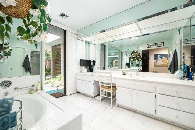 What an incredible opportunity: a spacious Pebble Beach Floorplan home that perfectly combines location and potential. This property is situated just steps from the community pond, offering spectacular views of the water and local wildlife. Location is everything, and this home delivers. With over 2,900 sq ft, it features four large bedrooms and four bathrooms, an open layout, and wonderful flow, making it ideal for entertaining. The home's price reflects that it needs updating, presenting a fantastic deal for a buyer seeking a project. Key features include: An open living space with a grand fireplace and high, pitched ceilings. Two dining spaces flanking the kitchen: one formal and one casual. The Primary Suite bath offers dual sinks, a sunken tub, a separate shower, and extensive closet space. Secondary Bedrooms: Each secondary bedroom has access to a private bath. The community provides an array of outstanding amenities, including a newly renovated clubhouse with a wonderful menu, updated pickleball and tennis courts, a complete gym, and the on-site Oasis Cafe for quick meals. There are also planned social activities such as yoga, cooking classes, Events and reading clubs. The location is minutes from key conveniences, including Eisenhower hospital, shopping at The River, Palm Springs Airport, El Paseo shops, and downtown Palm Springs.This is a rare gem in the rough--with a bit of love and renovation, it promises to become a crown jewel.