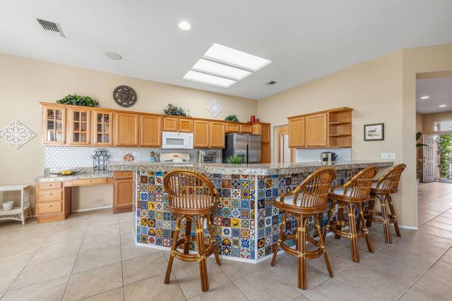 Beautiful property in Sun City...this spacious corner lot, great pool home awaits...Step inside, 10 ft ceilings and tile flooring give the home a spacious feel. Plantation shutters are throughout. Double doors open to a den/office. For entertaining there is a living/dining room. Adjacent to the kitchen is a family room with a fireplace and built-in media center...the kitchen has extensive cabinetry with inset glass, a desk ...granite counters. Double doors open to the primary suite that has french doors to the pool area, large walkin closet with built-in storage. The primary suite bathroom has dual sinks a stall shower and oversize tub. There is a guest bedroom with mirrored closet . There is a tub/shower in the guest bath. The laundry room has a utility sink and plenty of storage...The extended 2 car garage has a nook for a golf cart. This home has a pebbletec pool and spa with cascading spill over that is surrounded by a stamped concrete patio, desert landscaping and several fruit trees ...orange grapeftuit and lemon...a short distance to the Lakeview Recreation center with gym walking track and pool...A true winner