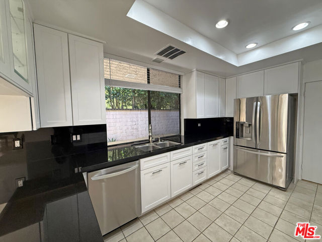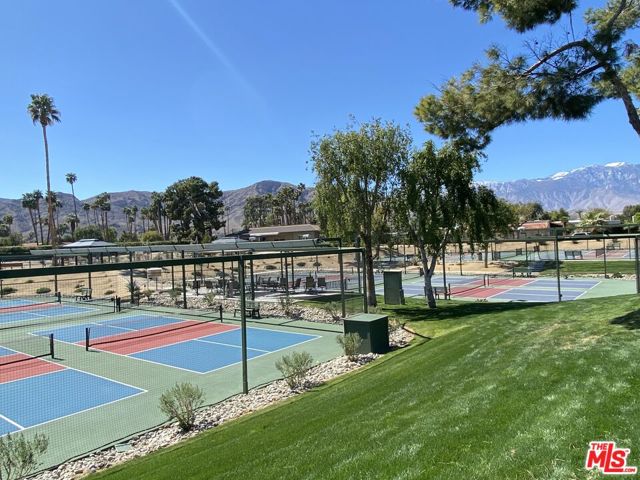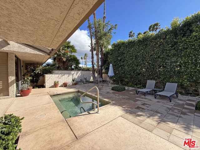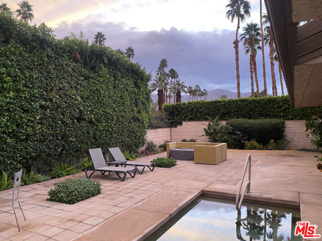 Fully furnished, ready to move in. Spacious four bedroom- four bath Pebble Beach plan in one of the premier Rancho Mirage golf resorts. The home is unique in that it has two large private yards that include five fan palms with views of others nearby. There is an orange tree and substantial hedges in the rear yard including a spa-spool. A gardeners dream with lush landscaping. Directly across is a palm grove with views of the golf course and lakes. The homes southern exposure provides warm sun from dawn to dusk during the cooler months and less direct sun in the summer. It is one of the most private homes in the resort. The interior has been upgraded with black granite tile, custom cabinets and bamboo flooring and has a very contemporary design. The former fourth bedroom has been transformed into a den and office. The Springs Country Club boast world-class amenities including golf, tennis, pickleball, bocci ball, bicycling, community pools and a high end fitness center. The Springs has a stunning clubhouse and because of its size (817 homes) a vibrant social community. It provides a true high-end desert resort lifestyle. The facilities, including the golf course were recently upgraded. The Springs is in a prime location located within minutes are restaurants and entertainment venues, El Paseo shopping, the Annenburg estate, Eisenhower Regional Medical Facility and the new Disney Contino Resort now under construction.