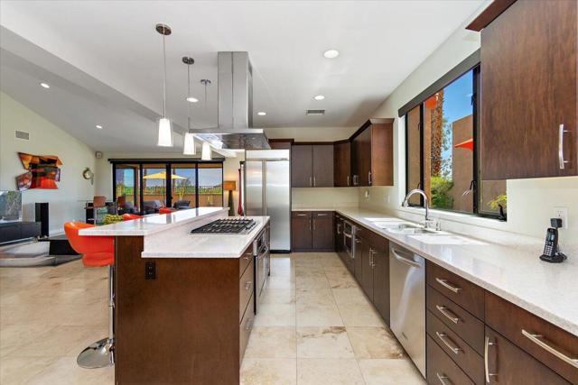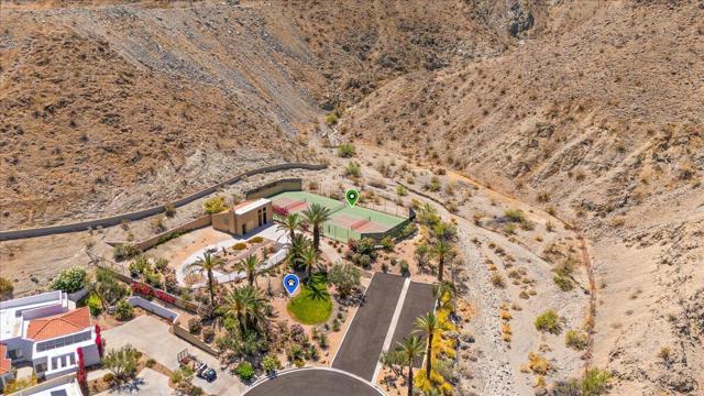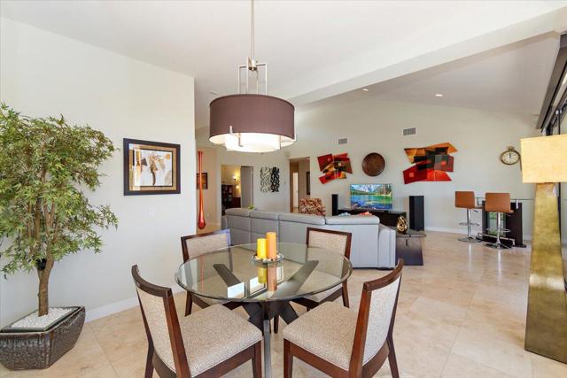 Open Floor Plan! This spectacular home features 2 primary ensuites. The 3rd bedroom is currently used as an office. Floor to ceiling patio doors in the living room, and both ensuite bedrooms. Stunning Mountain Views! Situated on a private cul-de-sac. Elevated luxury in Rancho Mirage! Discover your Desert escape at 11 Vista Loma Drive, a beautifully updated 3BD/3BA, 2,260 sq ft modern retreat in the gated community of Mirage Cove. Perfectly situated high above the valley floor, this home delivers beautiful mountain views, sparkling city lights, and breathtaking desert sunrises. What makes this home stand out is its location in prestigious Rancho Mirage situated in a tranquil and magical setting. The residence is fully renovated with thoughtful finishes and open flow. Floor-to-ceiling windows frame sweeping panoramic views that bring the outdoors in. An owned solar system ensures energy efficiency. The primary suite offers spa access, dual vanities, a grand stone walk-in shower with dual rain heads, and a generous walk-in closet. A second ensuite features its own entrance, full bath, and walk-in closet -- ideal for guests or extended stays. A third bedroom, currently used as an office, is paired with a full guest bath featuring a deep soaking tub. At the heart of the home, a chef's dream kitchen featuring granite counters and high-end Kitchen-Aid appliances flows seamlessly into the great room and dining area. The outdoor living space includes a resurfaced Pebble Tec pool and spa, a covered patio, and a low-maintenance yard designed for entertaining and relaxation. Additional highlights include soaring ceilings, stone countertops throughout, a full laundry room with Maytag appliances, an EV charging station, outdoor landscape lighting and more! Residents of Mirage Cove enjoy access to a community pool, spa, tennis courts, pickleball, a private park, and RV parking. With a flexible 30+ day rental policy this property is ideal for full-time living, a seasonal escape, or investment potential. Modern. Private. Elevated. This Rancho Mirage retreat has it all and is ready for its next owner.
