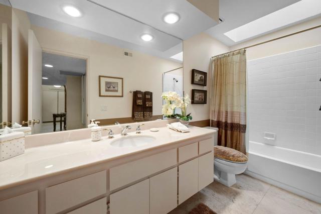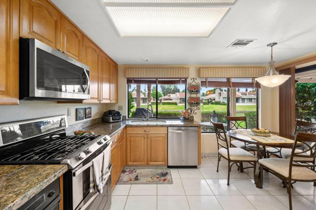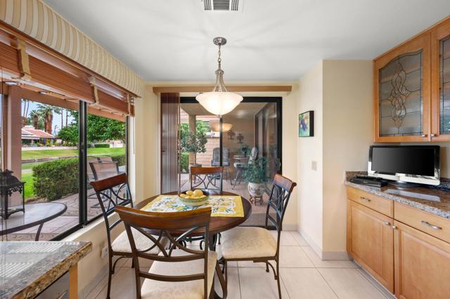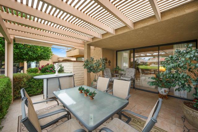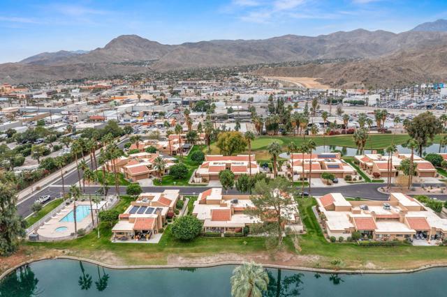 Experience the perfect blend of comfort, elegance, and location with this beautiful contemporary home in the well known city of Palm Springs. With 3 bedrooms and 2 bathrooms spread across 1,826 square feet, this property offers an inviting layout designed for both relaxation and entertaining. From the moment you enter through double entry doors, you're welcomed by vaulted ceilings, a sun-filled living room, and a stylish step-down wet bar a' perfect for cocktail hours with friends. The upgraded kitchen includes stainless steel appliances and a cozy breakfast room ideal for morning coffee. Outdoors, enjoy lake and mountain views from the private patio, all just steps from the community pool and spa. Nestled in a desirable golf course community and ideally situated between downtown Palm Springs and Palm Desert, this home offers effortless access to world-class shopping, dining, and entertainment. A true desert sanctuary!