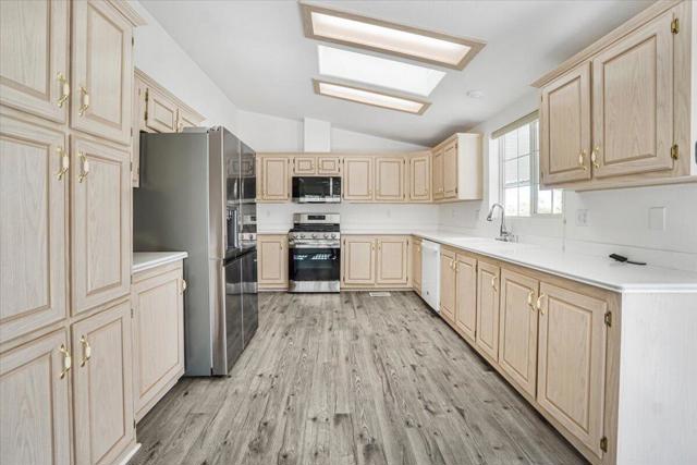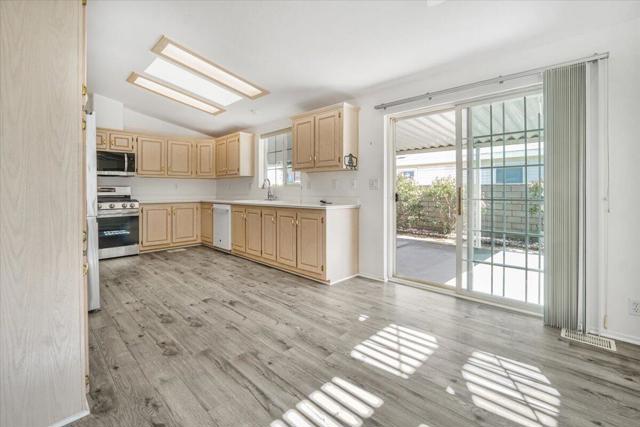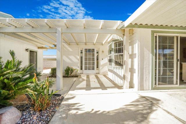 Open Floor Plan with Double Garage Priced to Sell! New Roof on this 1998 home with 2,004 square feet of living space on a spacious 7,405 square foot lot featuring a double car garage! This home features 3 bedrooms with an Open Floor Plan. Laminated flooring flows throughout the great room, breakfast nook, kitchen and the 3 bedrooms. The large master suite has a sitting area and plenty of closet space. There 2 guest bedrooms and a guest bathroom in the hall. The Kitchen has newer stainless-steel appliances and storage galore. Great for entertainment both inside and out. The outside patio is great for relaxing and entertaining. The back yard area for adding a pool if desired. Call to tour this unique home in Palm Desert Greens and Golf for Free!