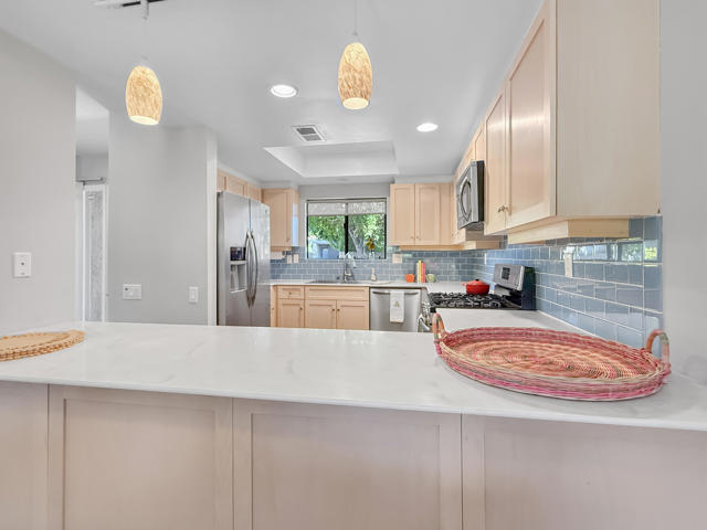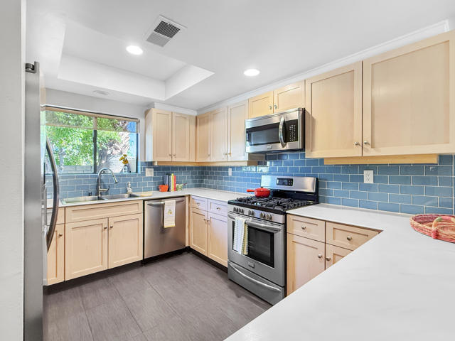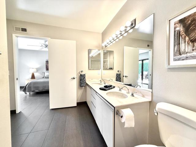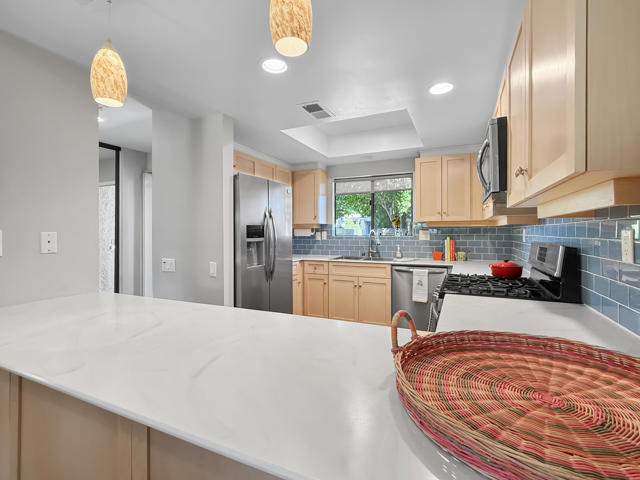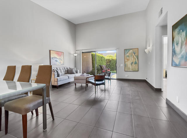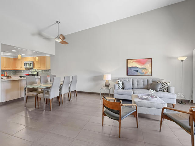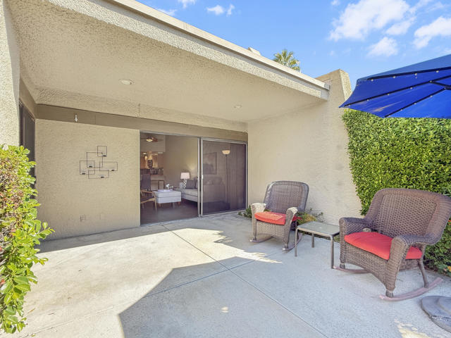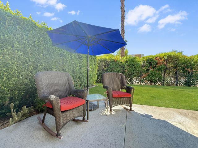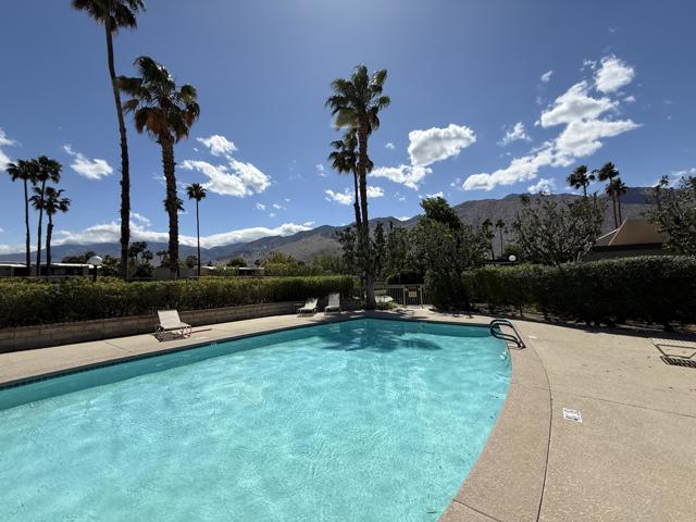 Located in the highly sought-after ''Rose Garden'', this spacious single-level 2-bedroom, 2-bath condo designed by Donald Wexler offers iconic mid-century style and comfort. Set on leased land with an option to purchase and convert to fee ownership ($230,000 approximate buyout cost), this home features a private front courtyard, covered back patio, and lawn area with breathtaking mountain views. Inside, enjoy vaulted ceilings, tile floors throughout, a remodeled kitchen with stainless steel appliances, inside washer/dryer, and an attached garage. The primary suite boasts a spacious bathroom, while the second bedroom--perfect as an office--opens to the private front courtyard. Just steps from community amenities and ideally located near downtown and the airport, this lock-and-leave condo is the perfect Palm Springs getaway for jetsetters or anyone seeking easy, low-maintenance living. The resort-style complex offers 2 pools, 3 spas, 2 tennis courts, and 4 new pickleball courts.