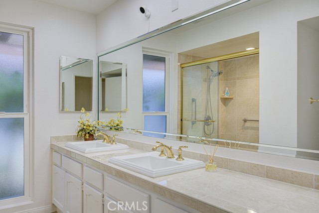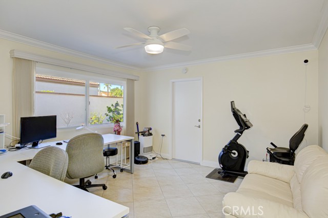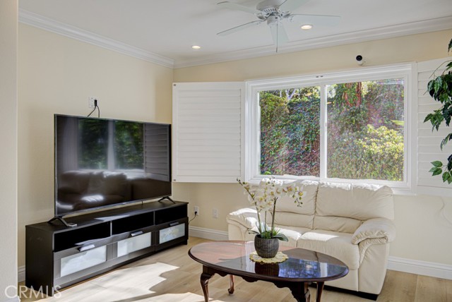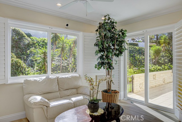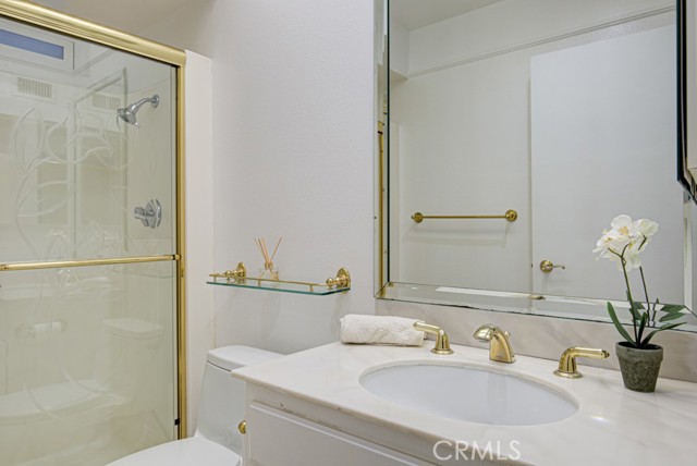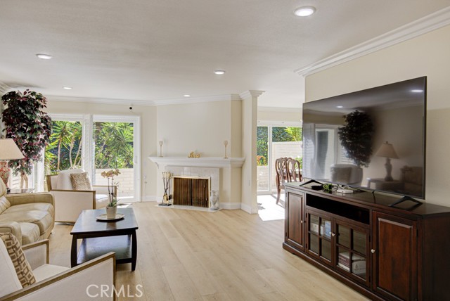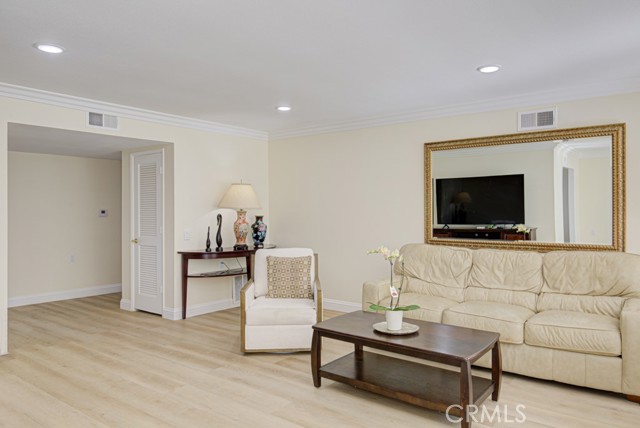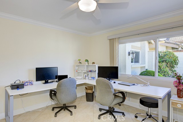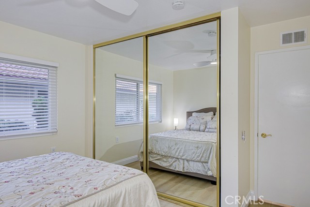 Welcome home! This lovely, bright Villa Serena home (3BDR/2BA) is the most popular model in prestigious Gate 11 and boasts a flowing, functional, and open floorplan that affords privacy, natural lighting, and greenery soothing to the eyes throughout from each room. As you enter through the front gate, you will see a beautiful brick courtyard tastefully landscaped with diverse flowers and mature plants. The back of the home has a spacious patio, accessed through sliding doors from the living, dining, and master bedrooms. What a perfect outdoor environment to entertain family and friends or enjoy your morning coffee! The kitchen window overlooks the front courtyard and thus gets natural light inside while providing you with a peaceful view of the neighborhood outside. The kitchen boasts upgraded quartz countertops, an updated stainless steel range hood, intricate backsplash, elegant off-white cabinetry, newer recessed lighting and appliances. The living room is expansive with a wood-burning fireplace and built-in bookcase. The master bedroom is larger than most others with its expanded addition, including a large private sitting area; large walk-in closet; an-suite bathroom with double sinks; large walk-in shower; and its location maximizes peace and quiet. The second bedroom has new window treatments, large mirrored sliding doors with closet space and convenient proximity to the second bathroom. The third bedroom has been converted into an office that looks out to the natural, green, landscaped courtyard and also has direct access to the laundry room and garage. With a central air/heating system, this lovely home also has double-paned windows/sliding doors, skylights, smooth ceilings, and a separate laundry room with washer/dryer. In 2023, the home was repainted throughout and luxury, modern, waterproof vinyl flooring was installed in most of the home. Located in the gated community of Laguna Woods Village—the premier, age 55+ active community in Orange County—this home is conveniently located with proximity to the Irvine Spectrum, Laguna Beach among other towns and offers many wonderful amenities such as a 27-hole golf course, tennis courts, separate pickleball courts, 5 swimming pools, 3 fitness centers, RV storage, garden center, and 7 clubhouses, including Clubhouse 4 that offers amazing classes in art, ceramics, wood shop, jewelry-making, and sewing, and much more. This updated, well-appointed, and well-maintained home won’t last long!