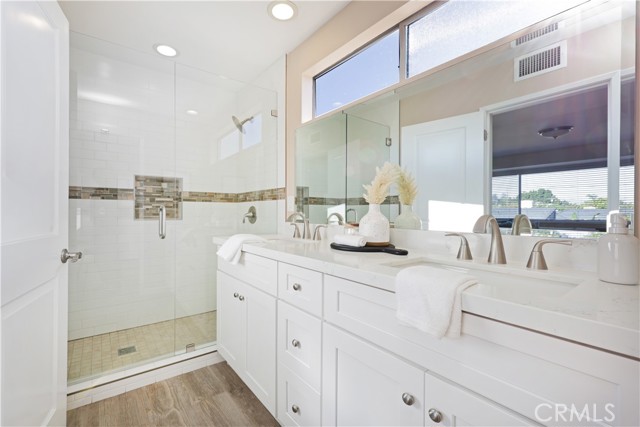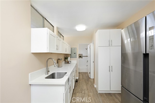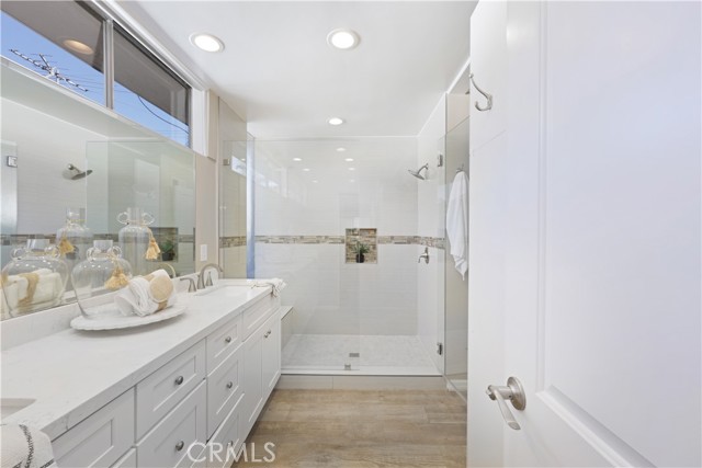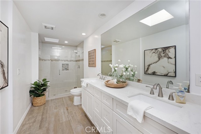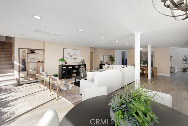 Spectacular contemporary home located in North East Downey! Enter the courtyard into a spacious living room, boasting tons of natural light! High ceilings with transom windows overlook covered patio with Pool and spa. Huge family room opens to kitchen, with quartz counters and double ovens. Large butlers pantry/ laundry room has space for 2nd refrigerator and tons of storage.Adjacent to the pantry is a bedroom and bath that could easily be used as a maid's quarters. Located off the family room are 2 spacious bedrooms and a bath. Upgraded 3/4 bath has an oversized shower with double sinks. Stairway off family room opens to a large entertainment area with 2 large bedrooms an a Jack and Jill bath with tub and a large separate shower with double sinks. easily convertable as a econd unit, if desired. Downstairs primary suite area has dressing area, separate shower and tub in main bath. and an extra bedroom that could be an office or used as another bedroom/nursery. Skylights throughout and custom closets in each bedroom Easy to maintain yard has a paved covered patio which is perfect for entertaining. Pool and spa are fenced. Circular driveway has ample parking and a 2 car carport plus a 1 car garage. This floorplan is perfect for a multi-generational home!