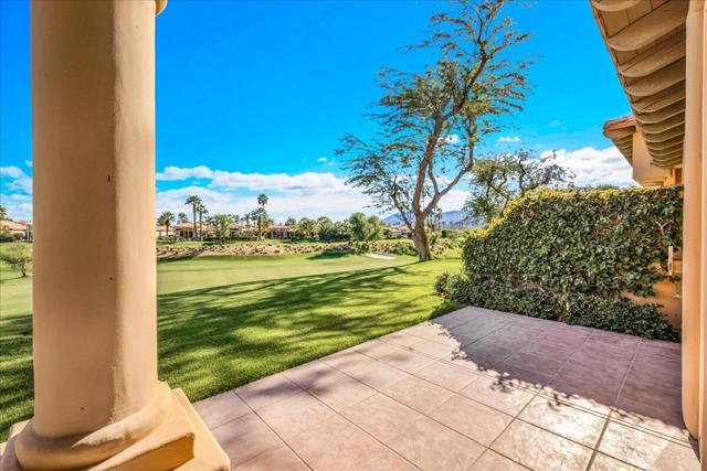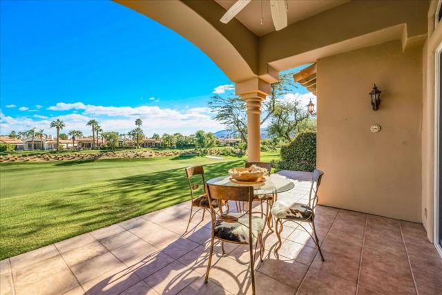 Imagine waking to the soft glow of the sun rising over the Santa Rosa Mountains, casting long shadows across pristine emerald fairways. This 3-bedroom, 3-bathroom ''Casita'' condo offers more than just a home; it is an invitation to a premier lifestyle where the boundary between your living room and the desert horizon disappears. Perfectly positioned on the first fairway of the Jerry Pate championship golf course, this residence serves as a low-maintenance sanctuary for those who prioritize location and community above all else. With the highly anticipated grand reopening of the newly renovated clubhouse this spring, you are at the heart of the Coachella Valley's most vibrant golf, tennis, and wellness scene. Whether you are seeking a ''lock-and-leave'' retreat or a canvas to create your own vision, this property provides a front-row seat to world-class amenities and unparalleled views that define the quintessential Rancho La Quinta experience.