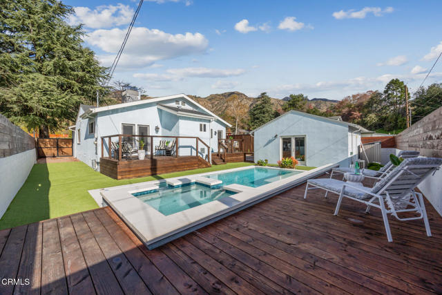 Welcome to this beautifully updated 3-bedroom, 2-bath home, refreshed from top to bottom. This home blends contemporary comfort with year around outdoor living.Inside, the living area flows seamlessly into the kitchen, where new stainless steel appliances, ample storage, and modern conveniences make this home a delight for entertaining. The spacious primary bedroom with en-suite bath offers a serene escape, featuring French doors leading to a private deck. Two additional bedrooms provide versatility for family, guests, or a dedicated workspace.Once outside, enjoy your own private oasis: a sparkling saltwater pool, expansive decking, and low-maintenance turf create a resort-like environment ideal for lounging and hosting. More than a garage, this versatile space features French doors opening to the pool, an epoxy floor, air conditioning, and a private sauna--ideal as a gym, studio, or retreat. With upgraded systems already in place, this home offers peace of mind and true move-in readiness. This sought-after neighborhood is situated in close proximity to hiking trails and parks with easy access to shops and restaurants, making this home the perfect blend of modern updates and foothill tranquility.