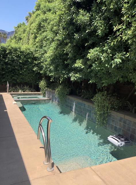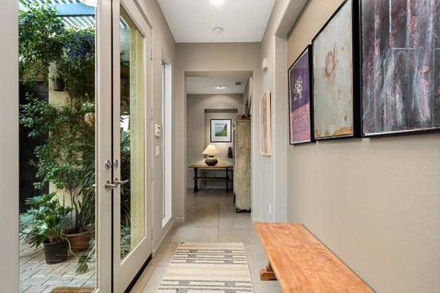 Representing one of the best overall values in desirable South Palm Springs- Presenting an inviting contemporary home in the highly sought-after Luminaire community--an intimate enclave in South Palm Springs consisting of pueblo-inspired desert modern homes. Effortlessly stylish, this home embodies the essence of the Palm Springs lifestyle. Entering through its charming courtyard with a fireplace and fountain sets the tone. Inside, you'll discover a beautifully crafted modern residence with clean architectural lines, sleek finishes, and nearly 3,000 square feet of well-appointed living space that is highlighted by modern tile flooring, high ceilings, and natural light. At the heart of the home is a spacious gourmet kitchen with bright Cambria Quartz countertops, expansive cabinetry, gas cooktop, built-in stainless-steel appliances, and a generous island -- an ideal workspace for cooking as well as for entertaining. The spacious dining area overlooking the courtyard flows seamlessly into the Great Room with a gas fireplace, all overlooking the private backyard with pool and spa. The outside living area is the perfect place to relax or entertain. Step outside into the cool shade of remote controlled Sunbrella awnings and slip into your private sparkling saltwater Pebble Tec pool & spa or fire up the built-in BBQ. One of the home's standout features is the spacious upstairs guest casita, offering a mini kitchen, bath, sleep number Murphy bed and a private patio with the best mountain views in all of Luminaire. This exceptional property blends architectural distinction with modern comfort--offering the ultimate Palm Springs retreat. Additional features include a spacious trellised courtyard with built-in lighting and misting system, fully warranted solar system & Apex water conditioning system. Please Note: Google Maps Street View for this street is Inaccurate (use Google Earth)