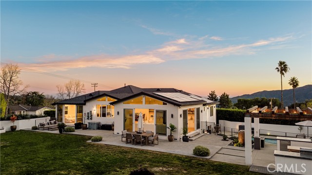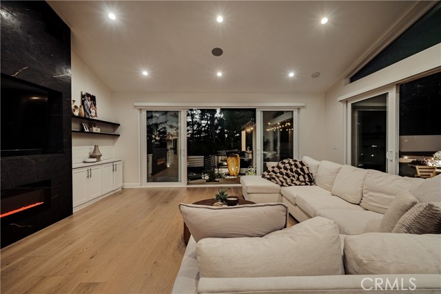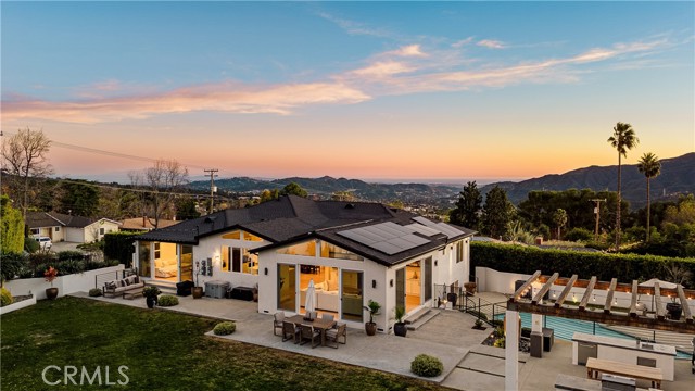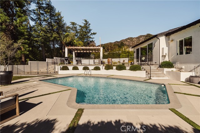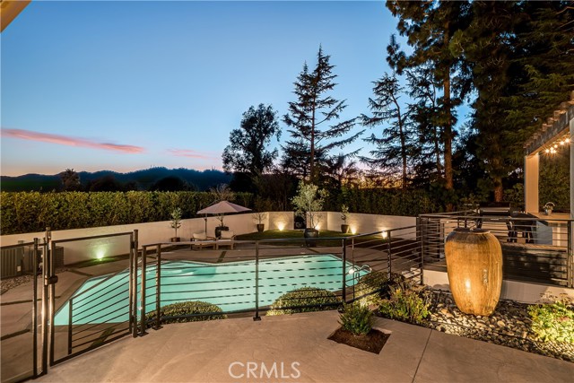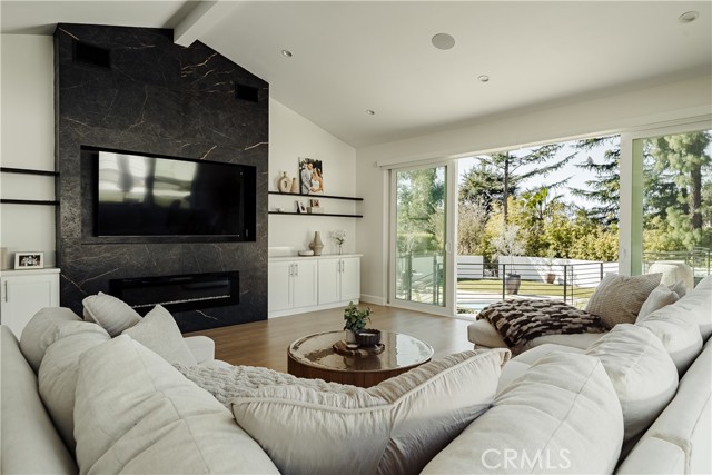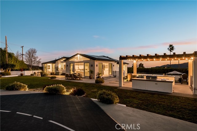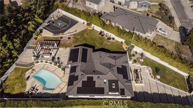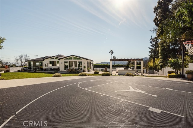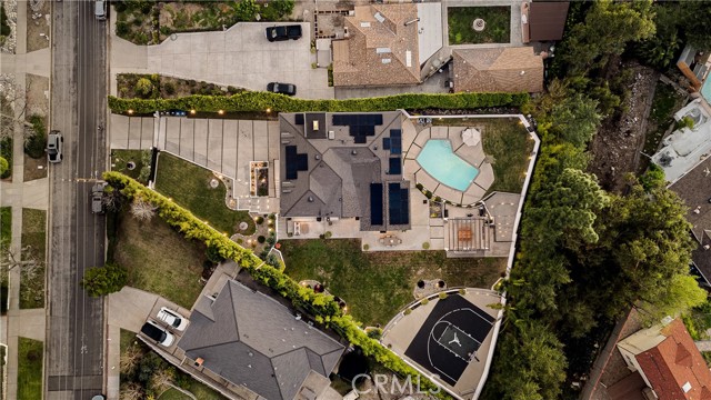 Exquisitely remodeled estate set on an expansive 26,932 sq ft lot, offering a rare blend of luxury, scale, and resort-style living. Completely renovated with permits in 2021, this exceptional residence spans 3,597 sq ft, plus a 350 sq ft bonus room off the garage, delivering both elegance and versatility. Vaulted ceilings and dramatic oversized windows create a light-filled, architectural statement throughout the home, while newly installed rich hardwood flooring flows seamlessly across all living spaces. A thoughtfully designed downstairs 5th bedroom—approximately 600 sq ft—may serve as a private in-law suite, guest quarters, or junior ADU, ideal for multi-generational living. At the heart of the home, the chef’s kitchen has impressive quartz countertops, an oversized island designed for entertaining, a Sub-Zero refrigerator, and refined finishes throughout. Additional living and bonus spaces include custom built-ins in the downstairs bonus room off the garage, perfect for a media room, office, or fitness studio. The resort-inspired backyard is an entertainer’s dream, featuring a newly resurfaced pool, custom sports court, and multiple patio areas designed for year-round enjoyment. The expansive outdoor living space is anchored by a fully equipped BBQ island with built-in refrigerator and generous counter space, ideal for hosting gatherings both large and intimate. Significant upgrades include full copper plumbing, tankless water heater, new front door, and fresh interior paint (2025). The home is enhanced with an interior and exterior music speaker system, 13 Ring security cameras, and ADT alarm and sensors. Energy efficiency is elevated with a 36-panel solar system producing 16.56 kW. Additional features include garage gym flooring and exceptional attention to detail throughout. A rare opportunity to own a truly turnkey estate offering privacy, luxury, and exceptional indoor-outdoor living on an oversized lot PLUS a fully automated remote control gate for added security.