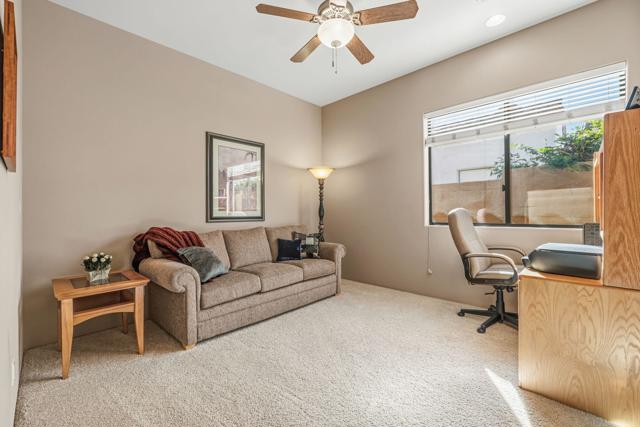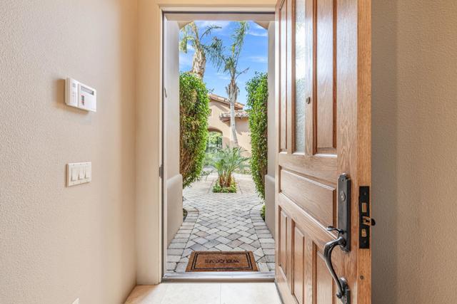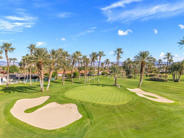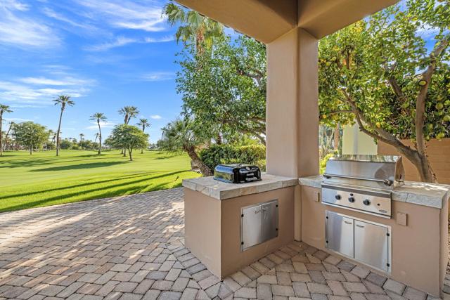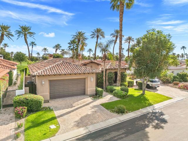 Located behind the gates of The Palms, this custom residence sits on an elevated lot along the 10th fairway, offering sweeping golf course views while maintaining a sense of privacy from golf activity.The open floor plan is filled with natural light from the floor to ceiling windows providing a 180 degree view and designed for both everyday living and entertaining. In addition to the great room, the home features a separate, very large family room, providing outstanding flexibility as a home office, media room, gym, or potential fourth bedroom. The great room, dining area, and kitchen flow seamlessly together, opening to the covered patio and landscaped grounds overlooking the course.The kitchen is well appointed with quality finishes and generous workspace, ideal for casual meals or hosting gatherings. The primary suite provides a comfortable retreat with patio access and a spacious bath, while the additional bedrooms are thoughtfully separated to offer privacy for family and guests.Outdoor living is enhanced by the elevated vantage point, with a covered patio and seating areas perfectly positioned to enjoy the golf course views, morning sunrises, and desert evenings.The Palms is one of La Quinta's most distinctive gated communities, with just 101 homes situated along the perimeter, offering exceptional privacy. The Golf Club at The Palms, designed by Fred Couples and Brian Curley, attracts pure golf enthusiasts, focusing purely on the game. Golf membership is available but not required, as the club is separate from the residential community. Buyers may enjoy viewing Jack Whitaker's video commentary highlighting the golf course. https://www.youtube.com/watch?v=dvD9iAWZkCcAll information deemed reliable but not guaranteed. Buyer and buyer's agent to verify all information, including but not limited to square footage, room count, permits, HOA details, membership availability, and property features.