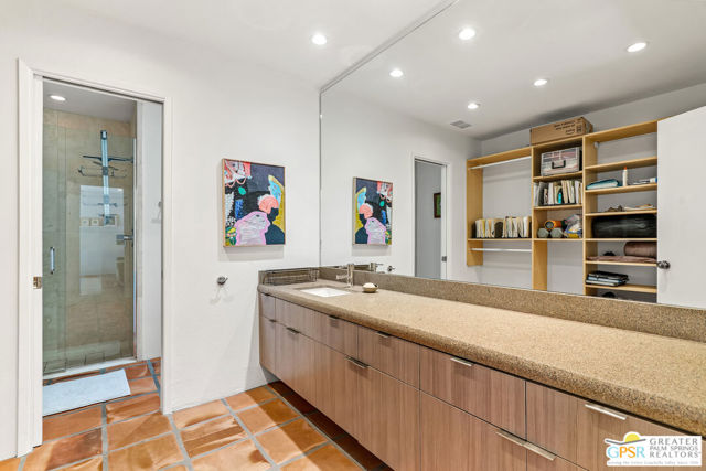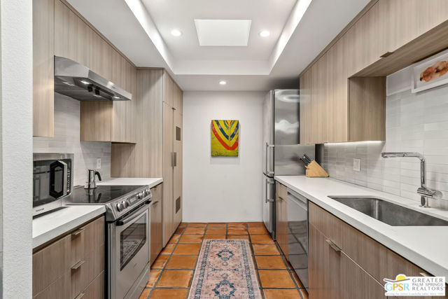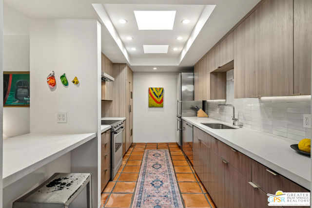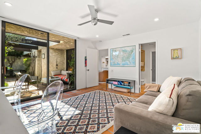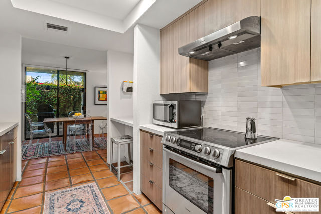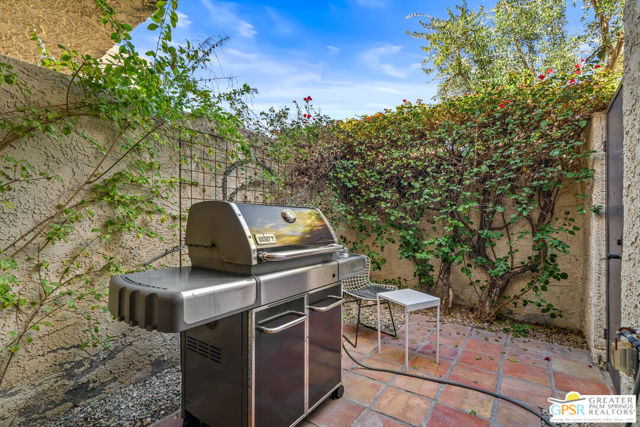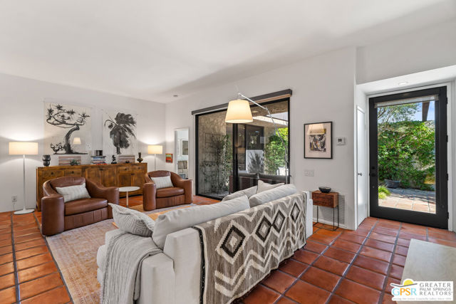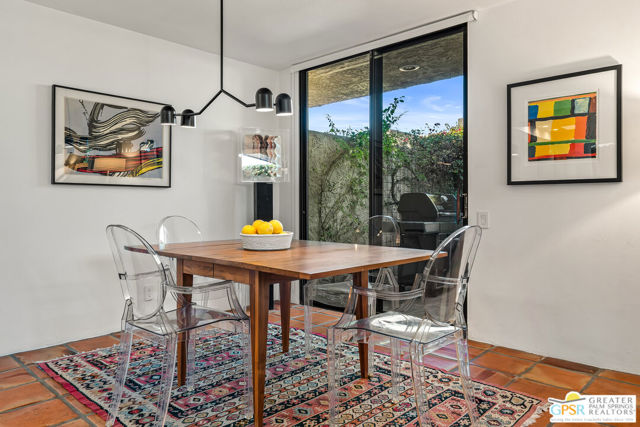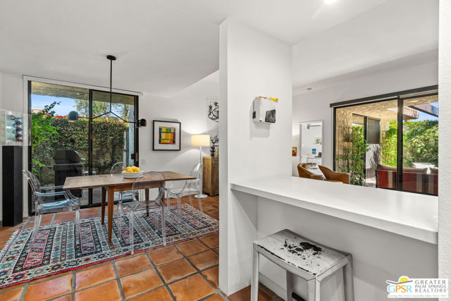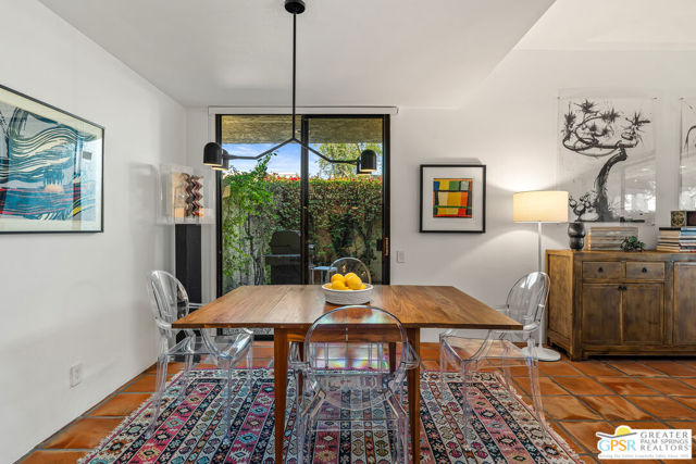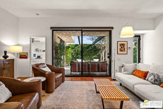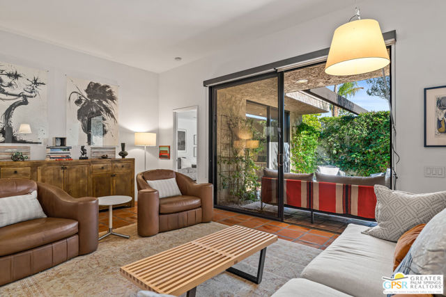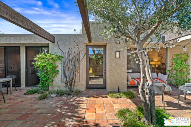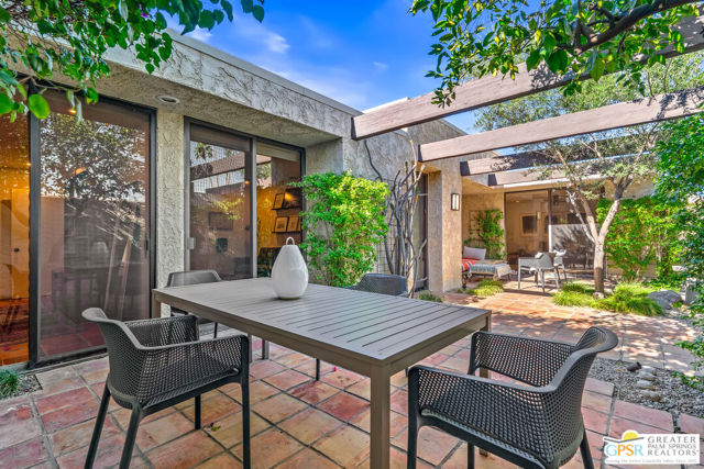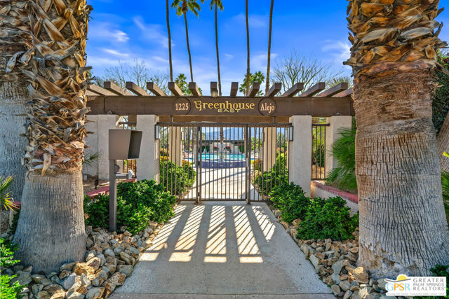 Outstanding opportunity! Great 3-bedroom, 3 bath at rarely available Greenhouse East. This perfectly sited home lives like a single family home but has all the advantages of condo living! Offering abundant outdoor access from nearly every room and is steps away from your own dedicated & private garage. Great floorplan offers outstanding separation of guest suite from Primary. Updated kitchen, renovated baths and uniform flooring throughout which offers a cohesive vibe. Fantastic walk to town location means you can enjoy coffee houses, restaurants and retail shopping and leave your car behind. Minutes to PSP International and I-10 commuters. Perfect for full time home second home. Ample storage, incredibly private courtyard and best priced 3 bedroom on fee land. Incredibly well-maintained grounds, awesome professionald and personal management and one of the best community pools in all of Coachella Valley!